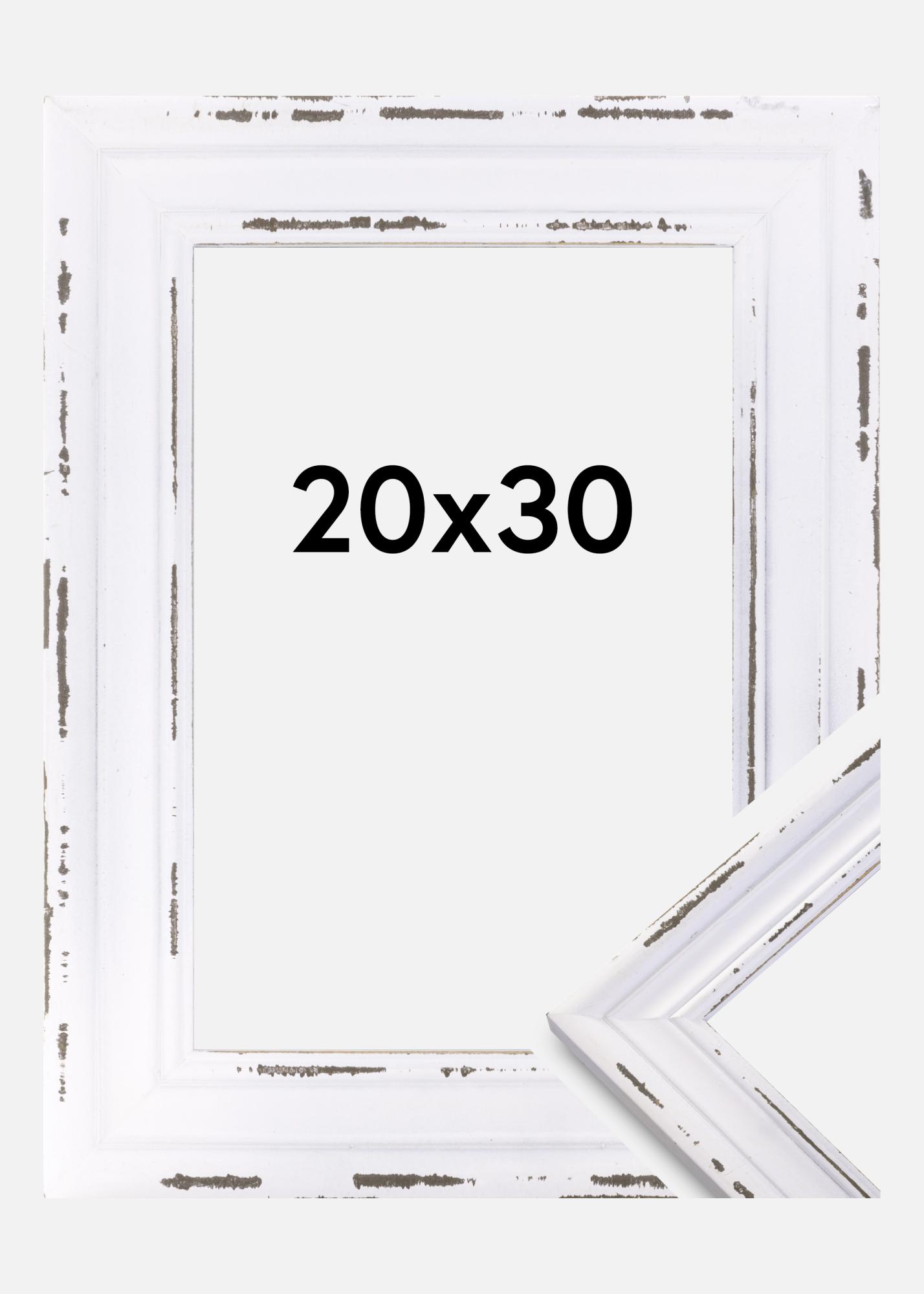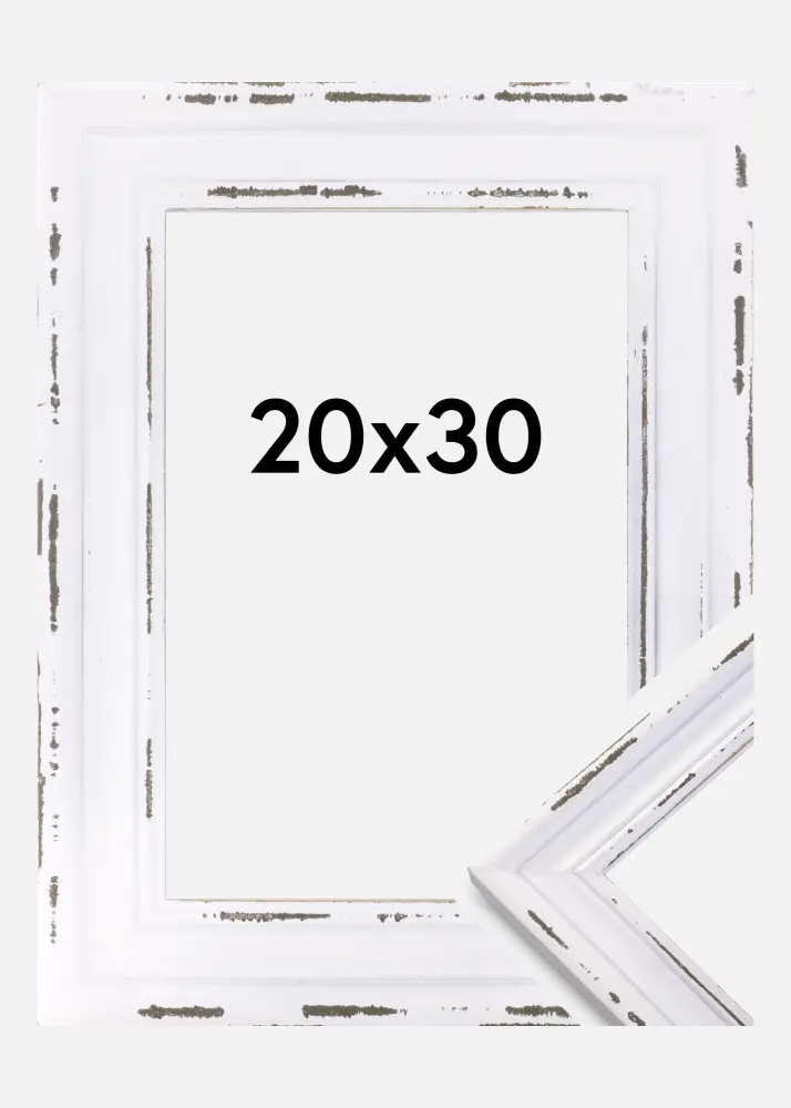 Se não tiver a sorte de herdar antigas fotografias de família emolduradas, terá que criar essas telas por conta própria. Aqui temos uma moldura decorativamente desgastada que encaixa-se perfeitamente para esse propósito! A moldura é branca, com um perfil clássico e partes desgastadas onde a madeira é visível. Escolha entre uma variedade de tamanhos!
