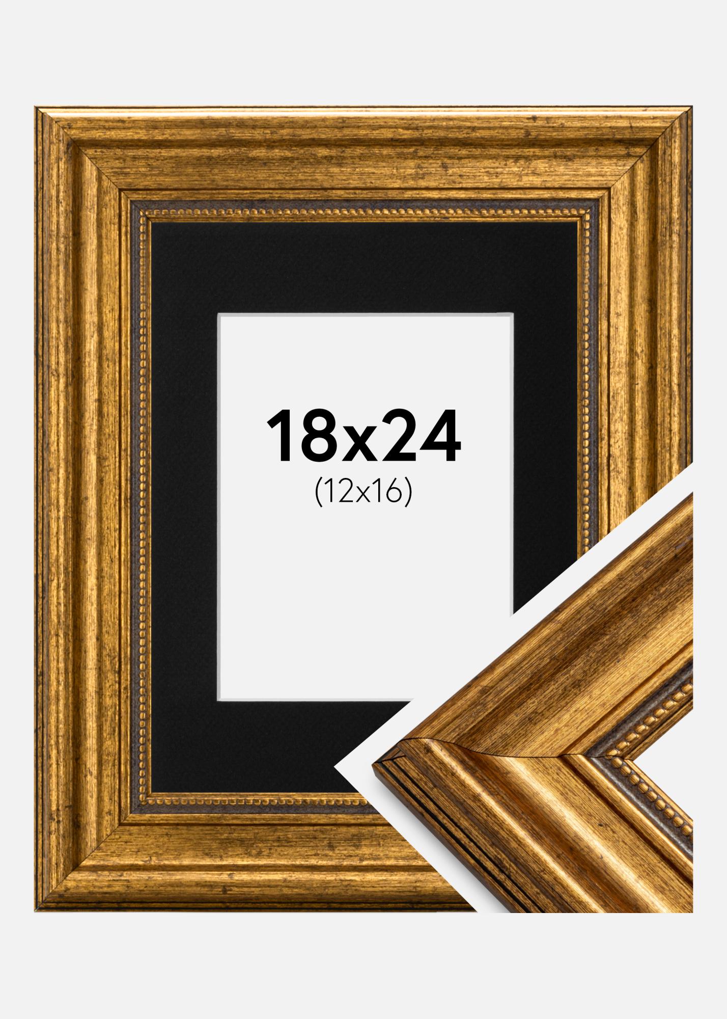 Moldura Rokoko Dourado 18x24 cm - Passe-partout Preto 13x17 cm