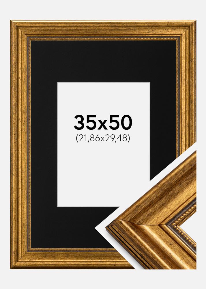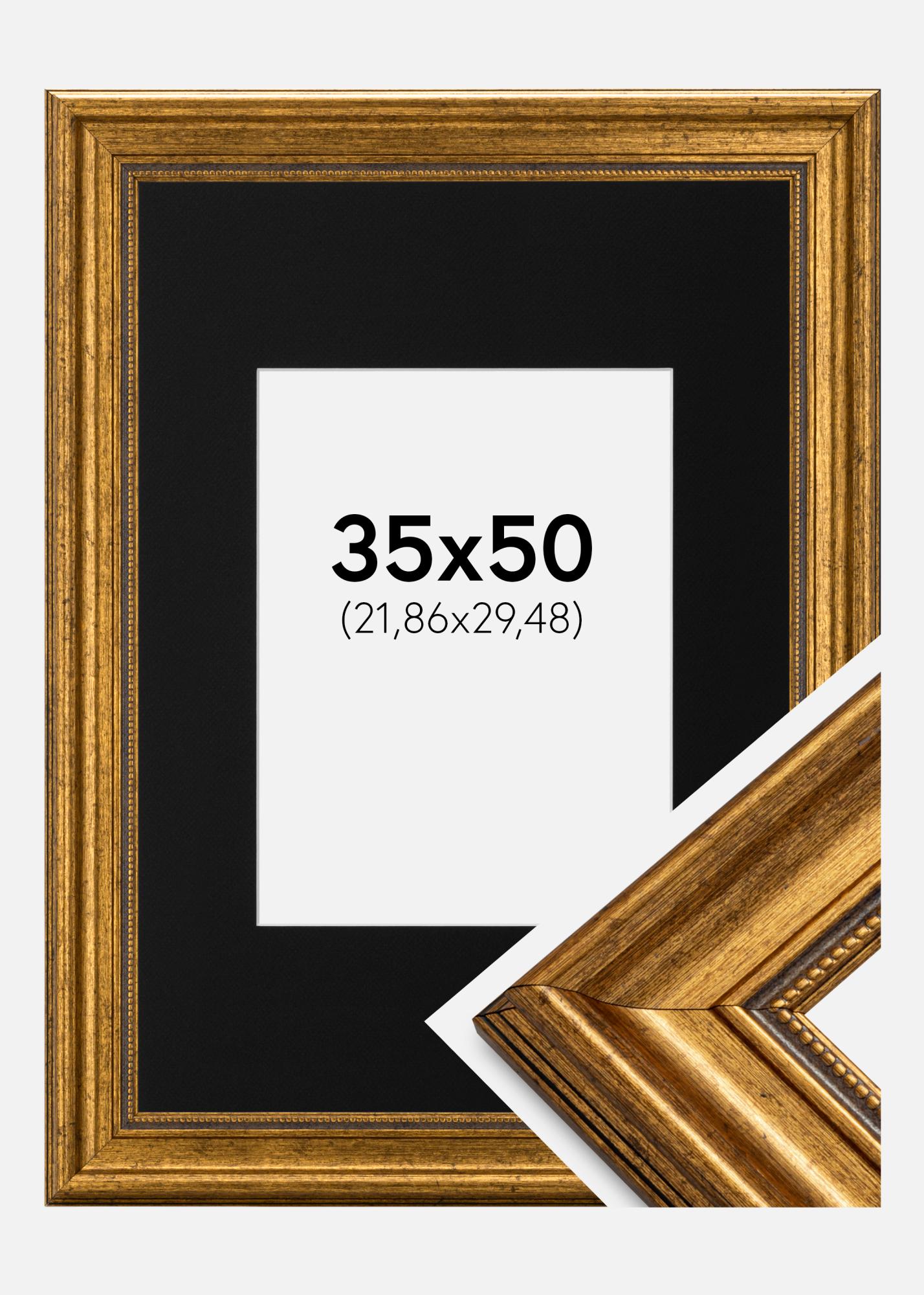 Moldura Rokoko Dourado 35x50 cm - Passe-partout Preto 9x12 inches
