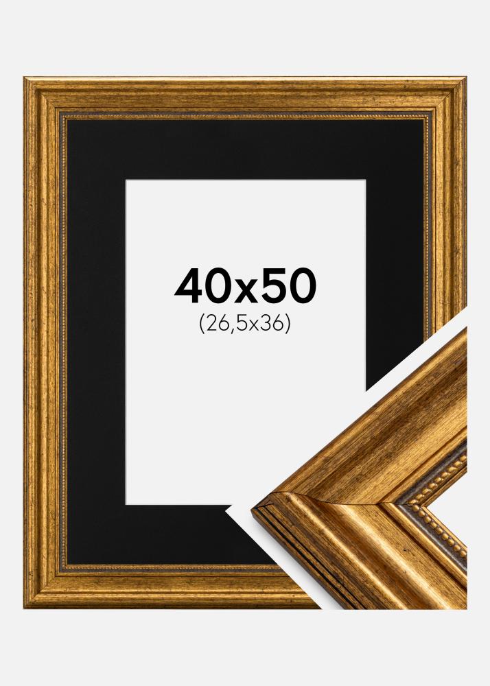 Moldura Rokoko Dourado 40x50 cm - Passe-partout Preto 27,5x37 cm