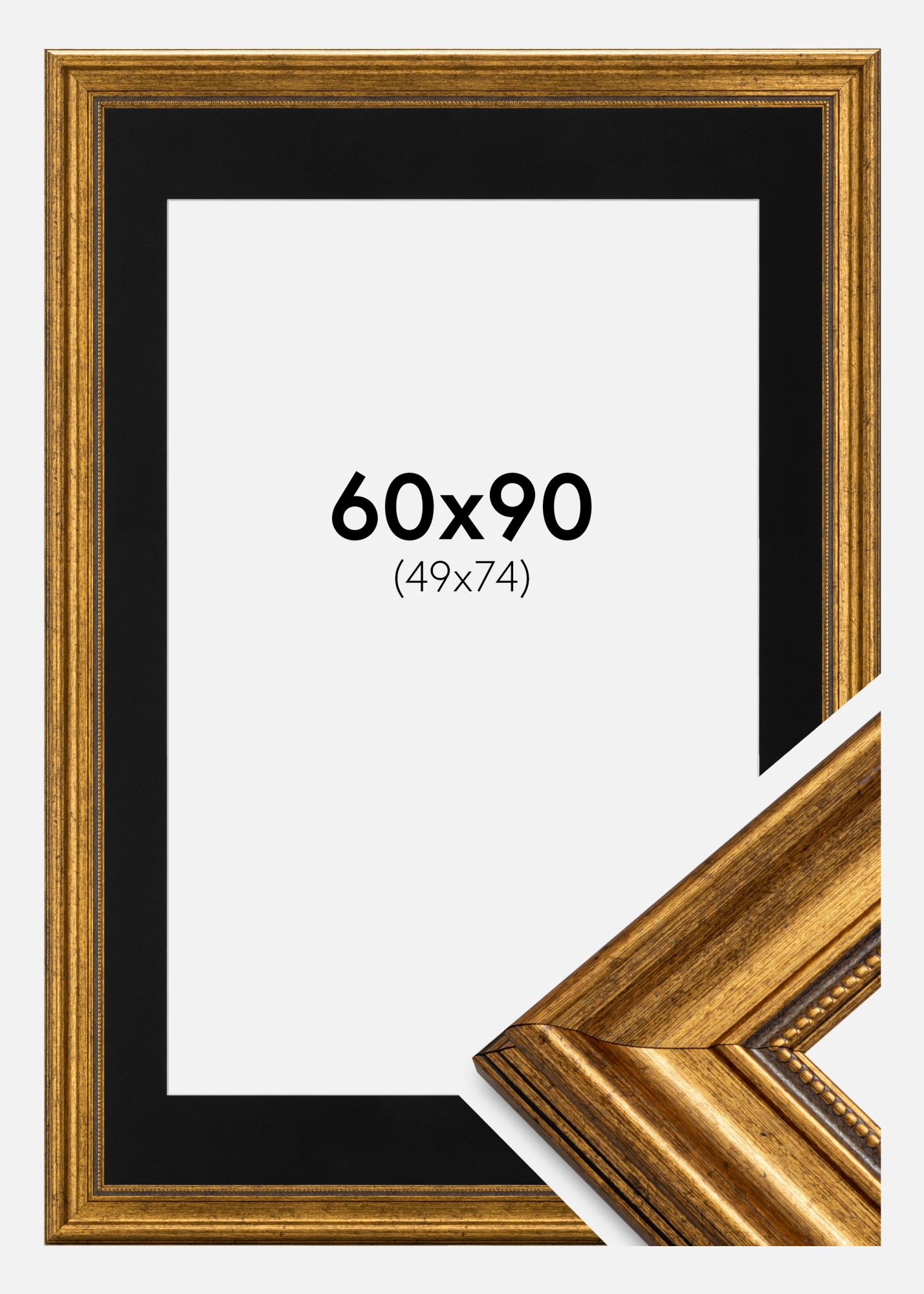 Moldura Rokoko Dourado 60x90 cm - Passe-partout Preto 50x75 cm