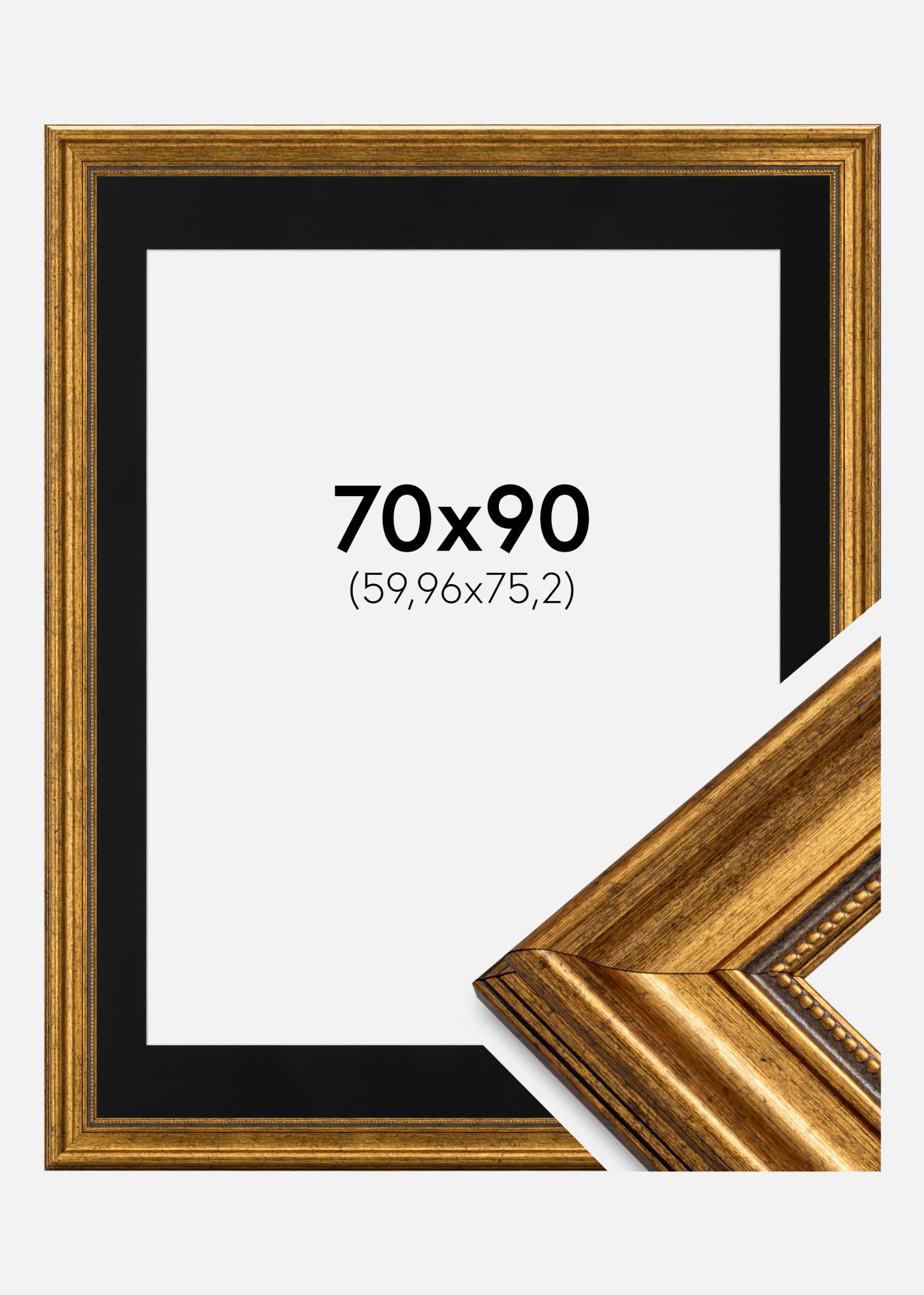 Moldura Rokoko Dourado 70x90 cm - Passe-partout Preto 24x30 inches