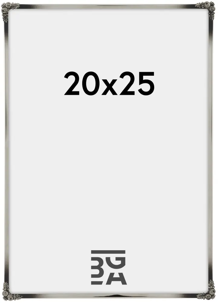 Rosen Metall Prateada é uma moldura em estilo clássico, onde cada canto é decorado com pequenas rosas elegantes. A moldura é feita de metal prateado e tem um acabamento levemente "queimado" que ajuda a criar uma sensação extra elegante. Na parte de trás, há suportes de parede e suporte traseiro, o que permite que a moldura seja colocada na parede ou como decoração num móvel.