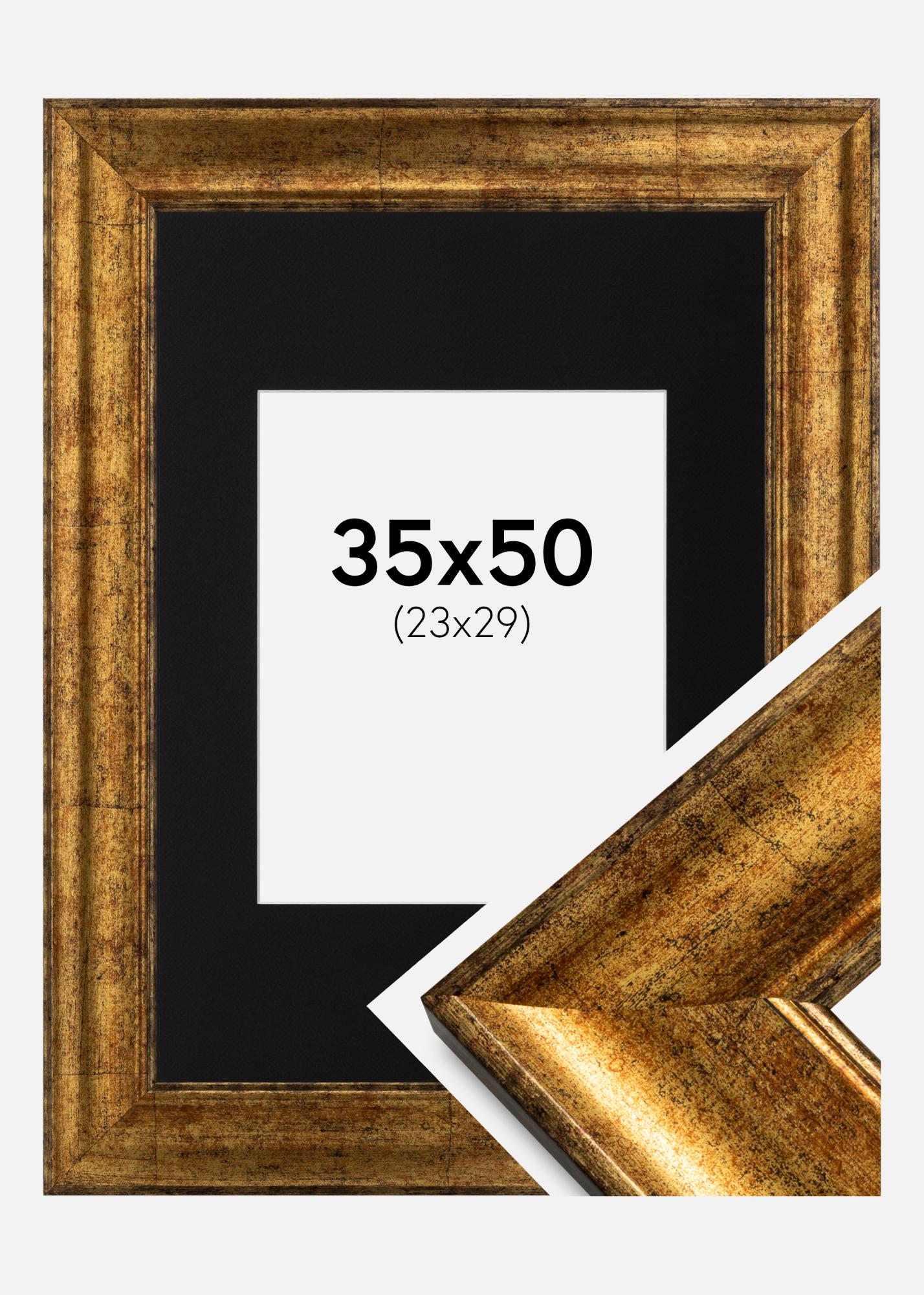 Moldura Saltsjöbaden Dourado 35x50 cm - Passe-partout Preto 24x30 cm