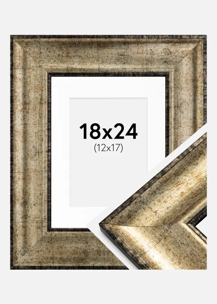 Moldura Saltsjöbaden Ouro antigo 18x24 cm - Passe-partout Branco 13x18 cm