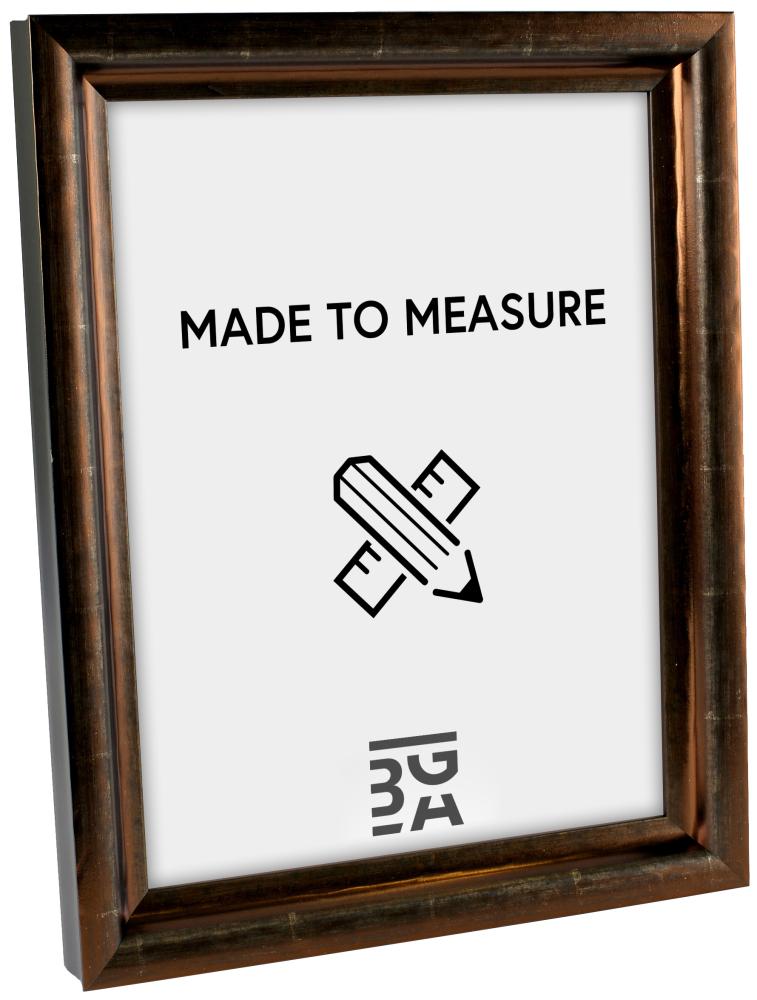 Moldura clássica de quadro onde mesmo escolhe o tamanho da moldura que deseja. Com o seu perfil largo e profundo, esta é definitivamente uma moldura que chama a atenção. A moldura tem um tom de bronze escuro em estilo retro com mudanças de cor agradáveis.