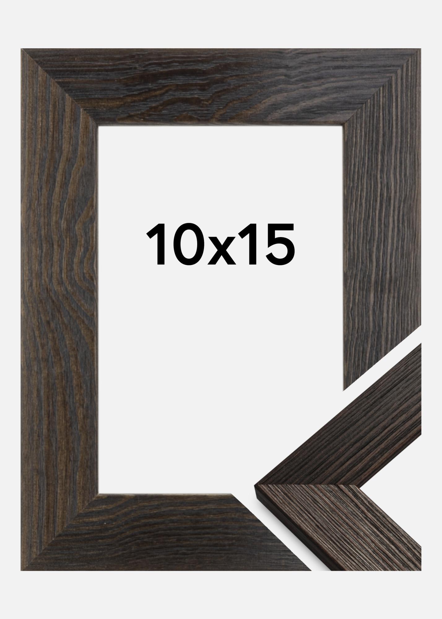 Moldura de madeira marrom sólida com veios de madeira visíveis e um perfil amplo. Ideal quando procura uma moldura de madeira escura com uma sensação natural. Perfeito para imagens de ambiente e paisagens.