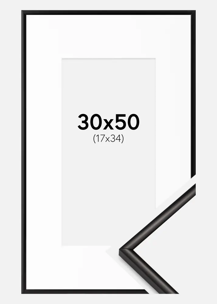 Moldura Scandi Preto Fosco 30x50 cm - passe-partout Branco 18x35 cm