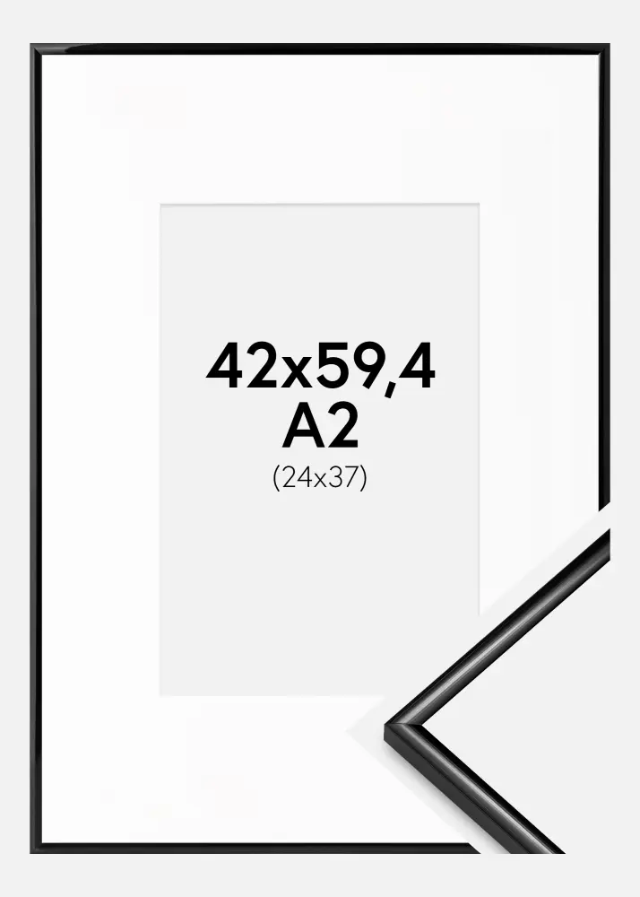 Moldura Scandi Preto 42x59,4 cm (A2) - Passe-partout Branco 25x38 cm