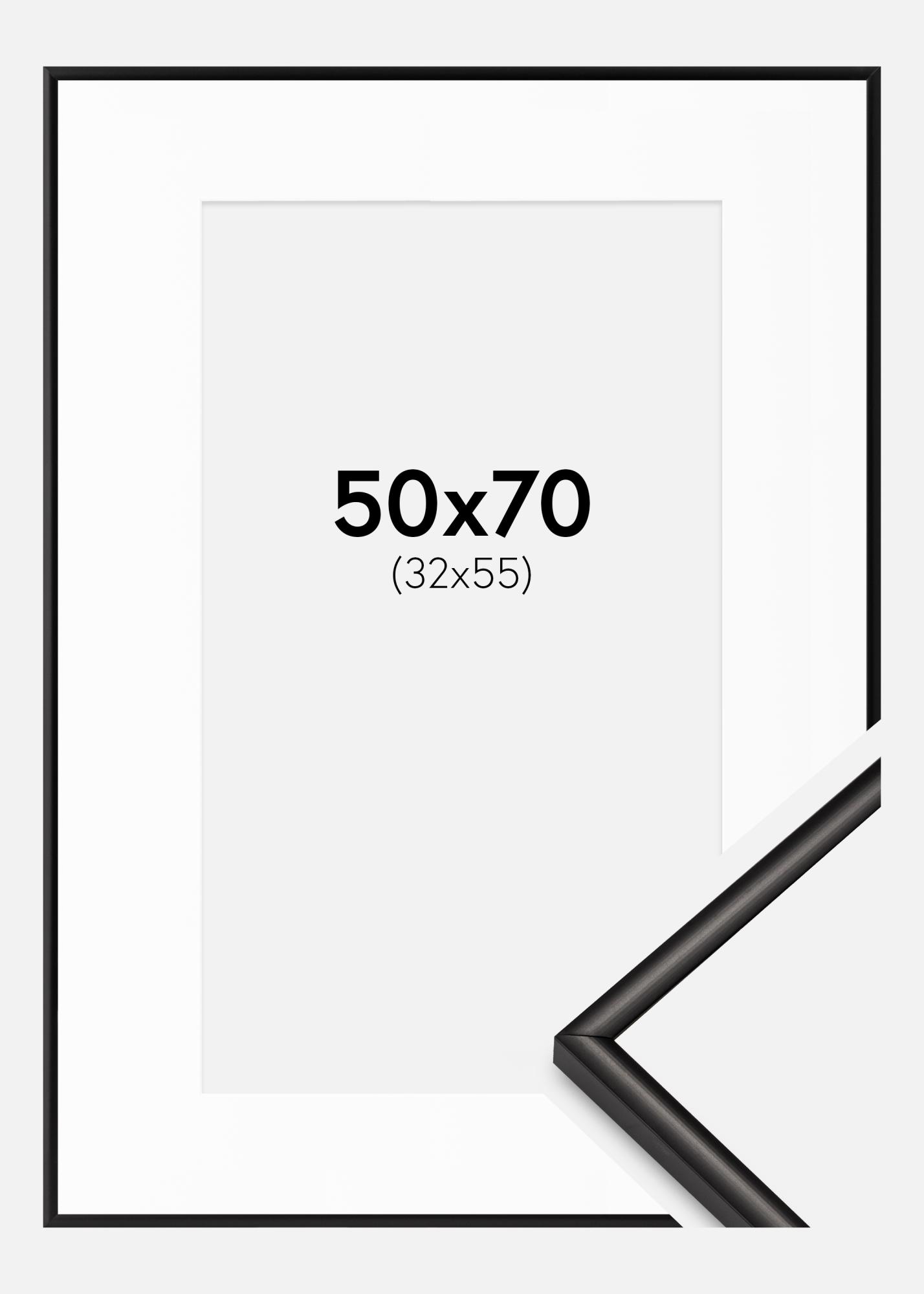 Moldura Scandi Preto mate 50x70 cm - Passe-partout Branco 33x56 cm
