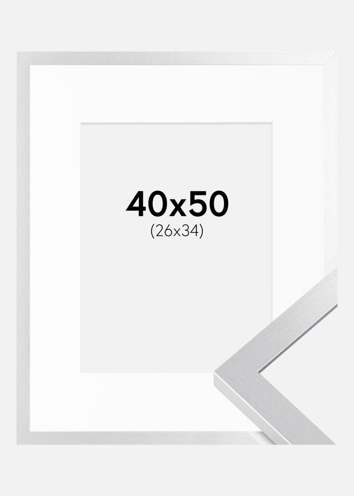 Moldura Selection Prateado 40x50 cm - Passe-partout Branco 27x35 cm