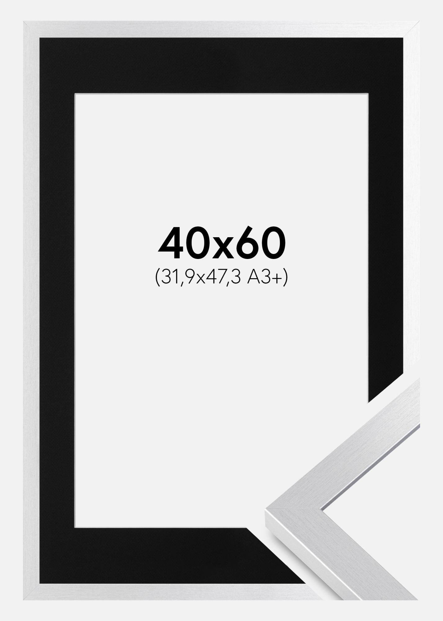 Moldura Selection Prateado 40x60 cm - Passe-partout Preto 32,9x48,3 cm (A3+)