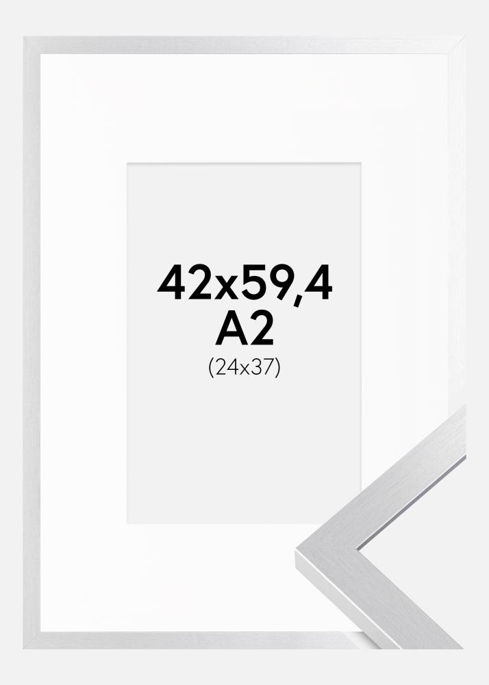 Moldura Selection Prateado 42x59,4 cm (A2) - Passe-partout Branco 25x38 cm