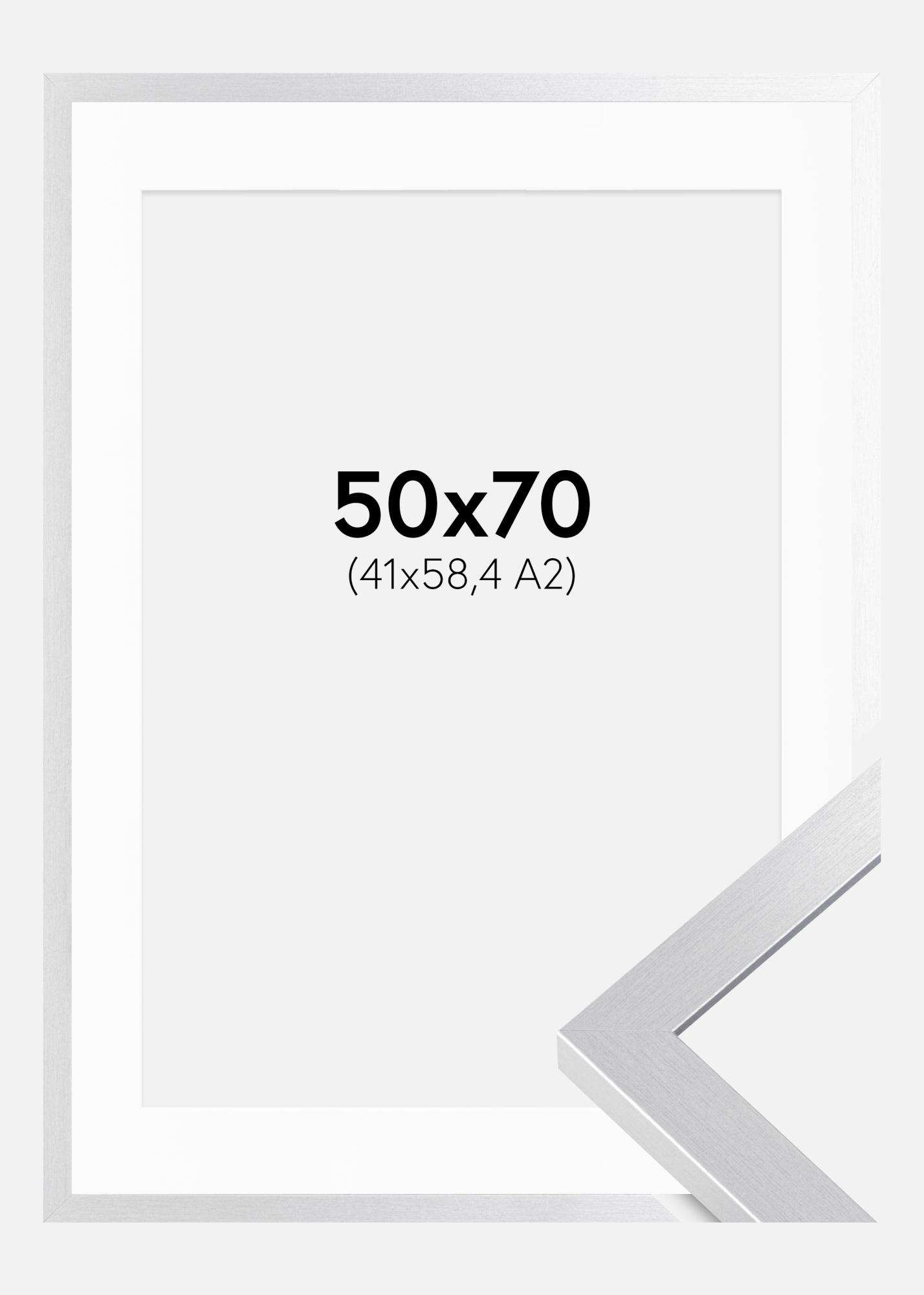 Moldura Selection Prateado 50x70 cm - Passe-partout Branco 42x59,4 cm (A2)