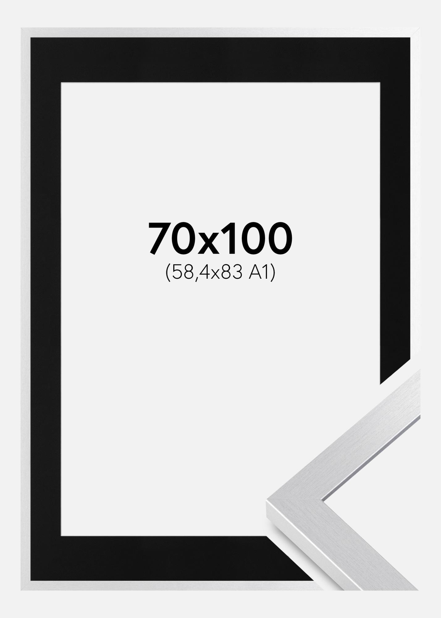 Moldura Selection Prateado 70x100 cm - Passe-partout Preto 59,4x84 cm (A1)