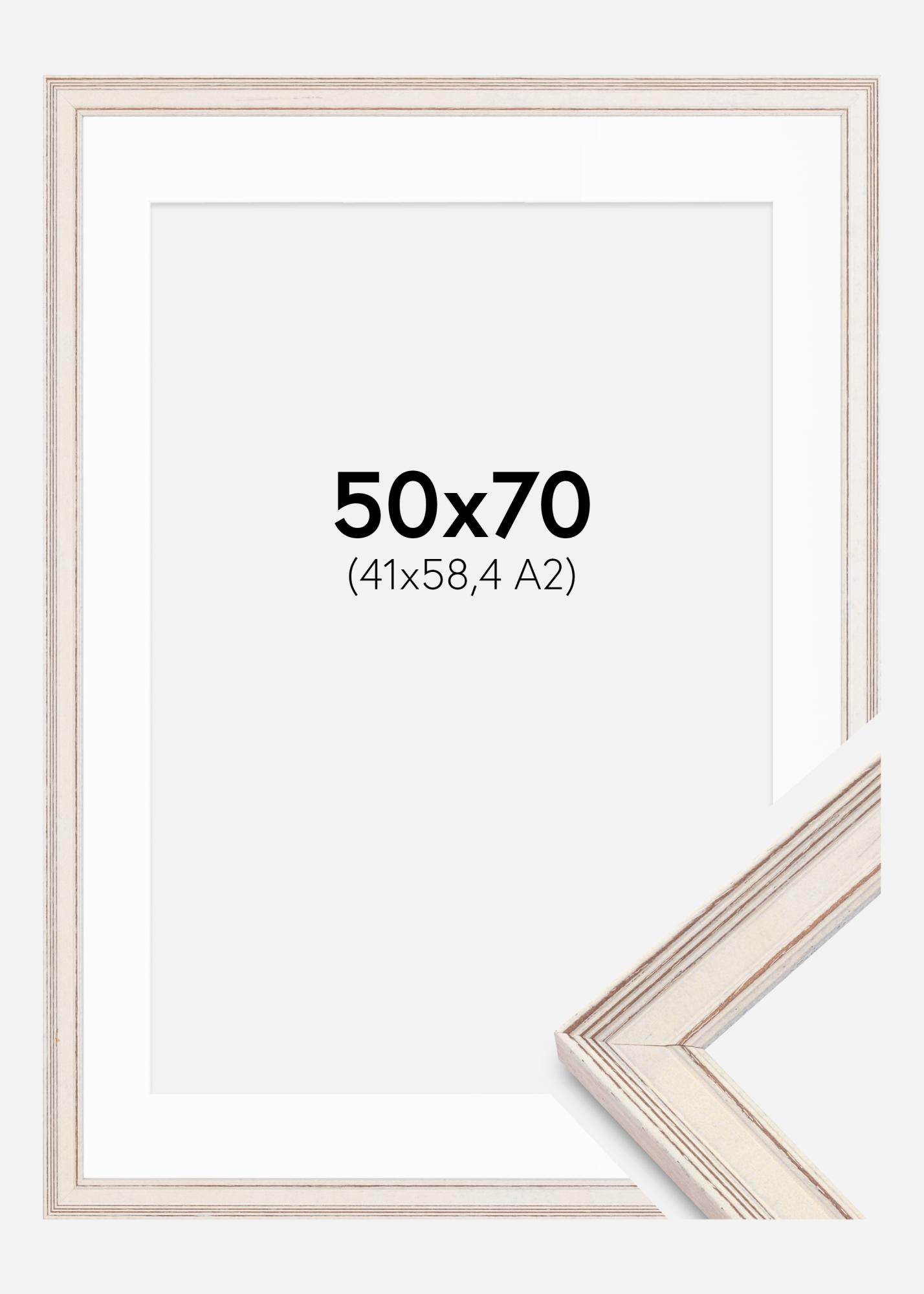 Moldura Shabby Chic Branco 50x70 cm - Passe-partout Branco 42x59,4 cm (A2)