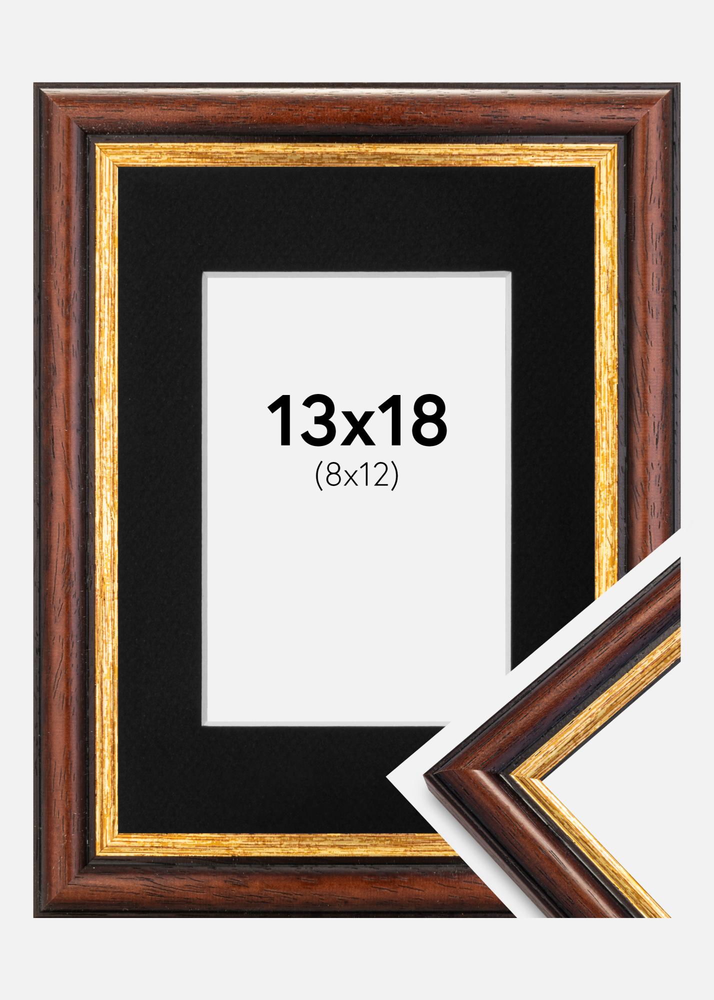 Moldura Siljan Castanho 13x18 cm - Passe-partout Preto 9x13 cm