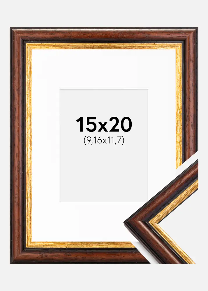 Moldura Siljan Castanho 15x20 cm - Passe-partout Branco 4x5 inches