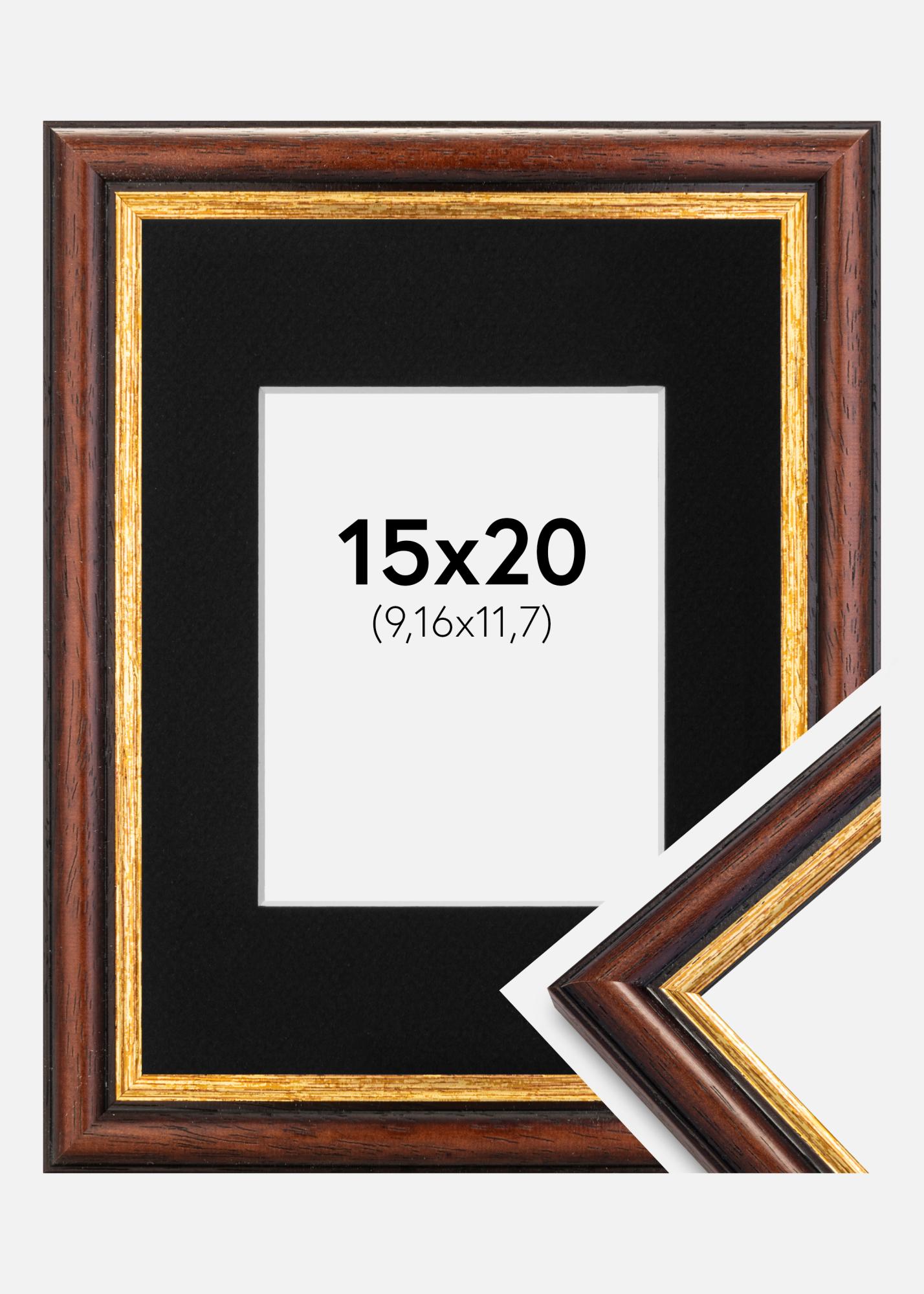 Moldura Siljan Castanho 15x20 cm - Passe-partout Preto 4x5 inches