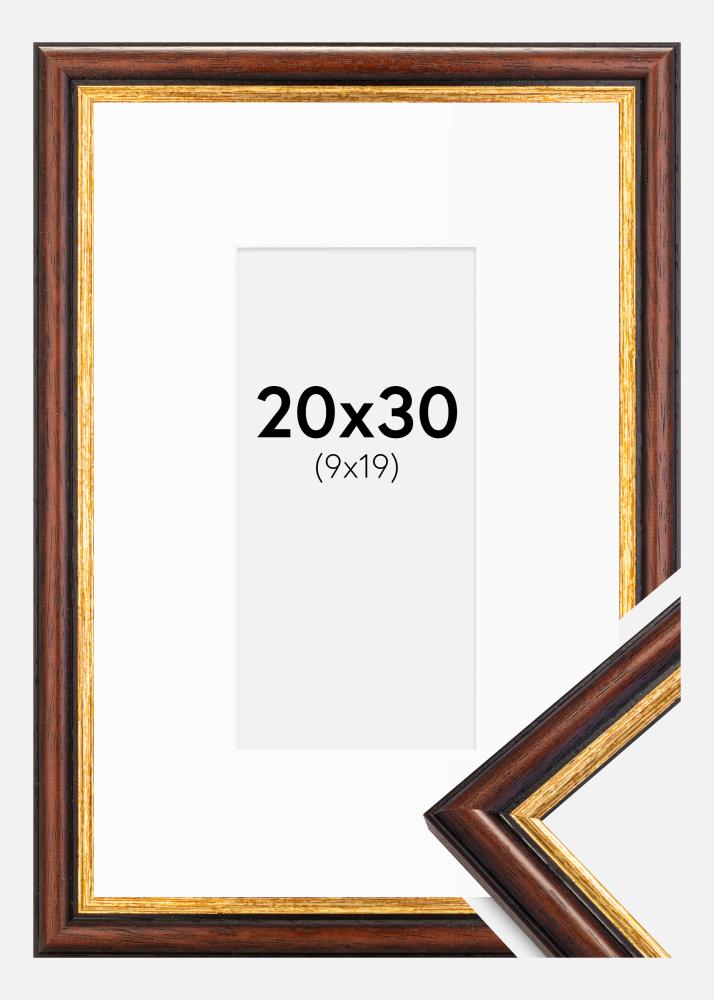 Moldura Siljan Castanho 20x30 cm - Passe-partout Branco 10x20 cm