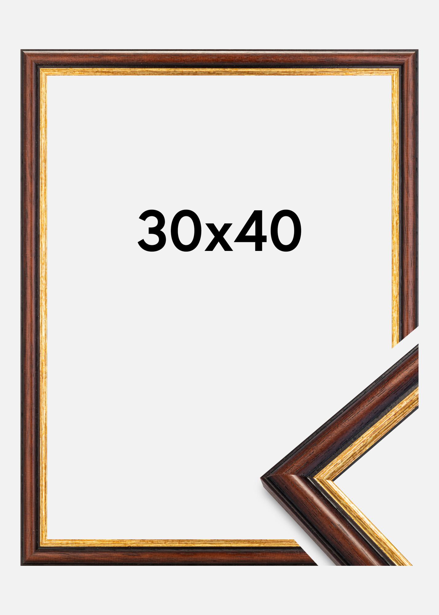 Siljan Brun é uma moldura para fotos de estilo clássico de alta qualidade fabricada na Suécia pela renomada Galleri1. A moldura possui um perfil de madeira marrom (24 mm) com uma borda dourada próxima à imagem, o que proporciona uma sensação elegante. Perfeito quando está à procura de uma moldura para fotos clássica com um toque especial.