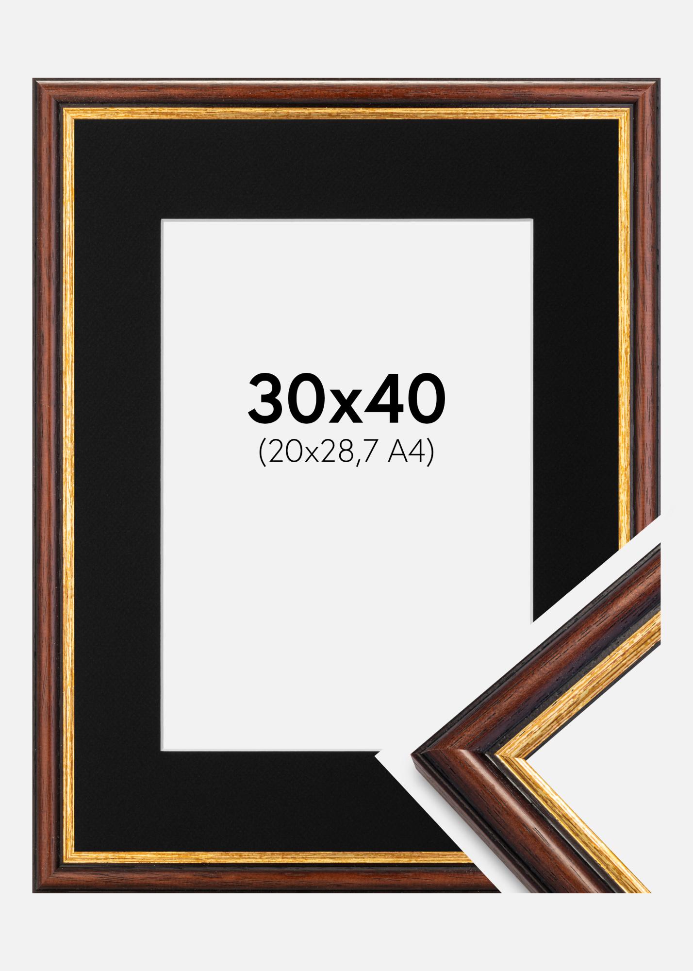 Moldura Siljan Castanho 30x40 cm - Passe-partout Preto 21x29,7 cm (A4)