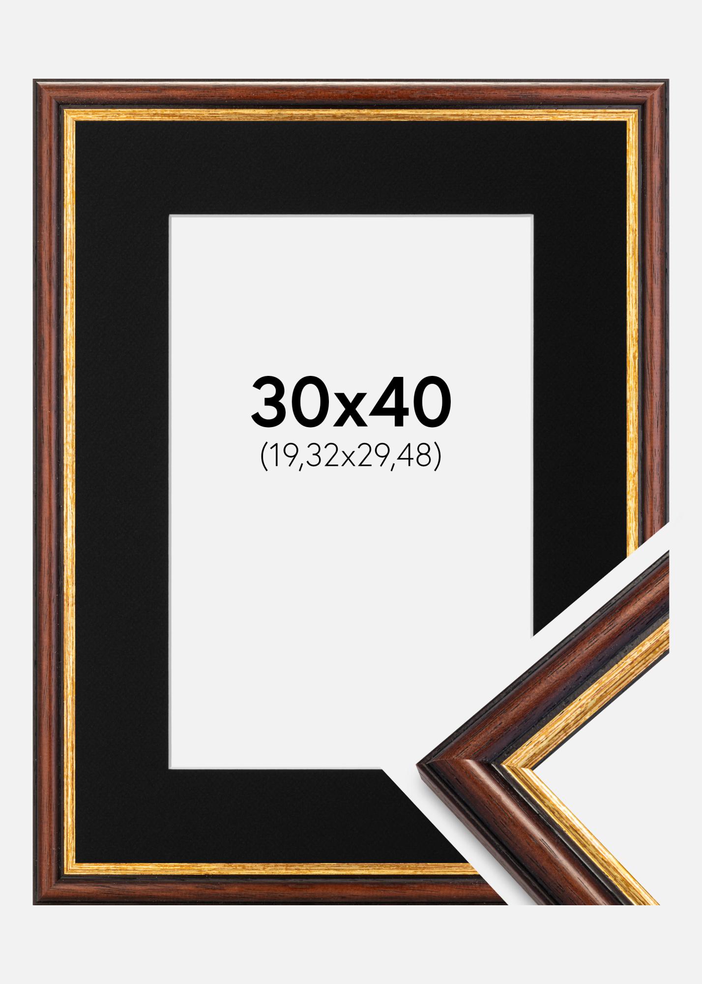 Moldura Siljan Castanho 30x40 cm - Passe-partout Preto 8x12 inches
