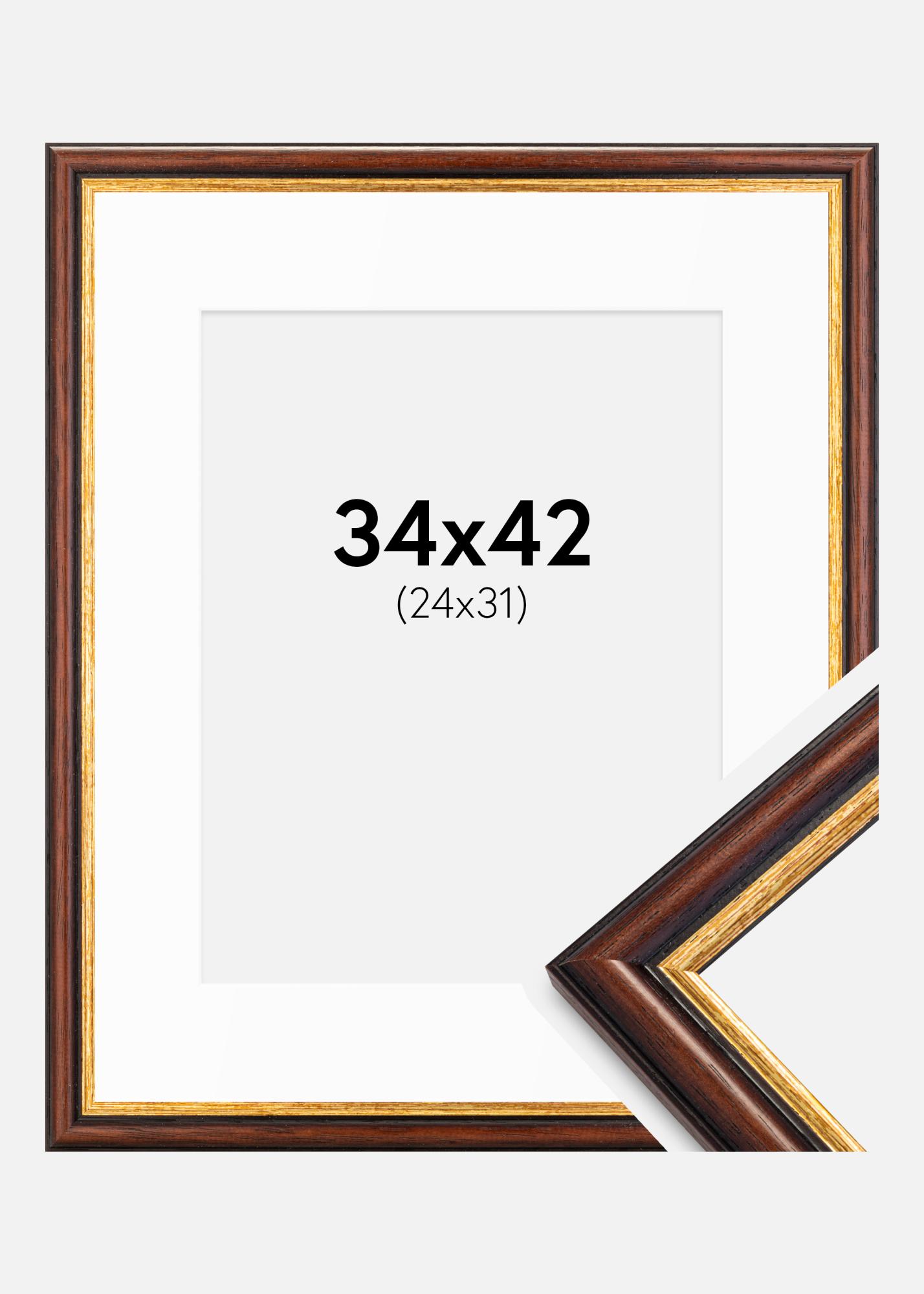 Moldura Siljan marrom 34x42 cm - passe-partout Branco 25x32 cm