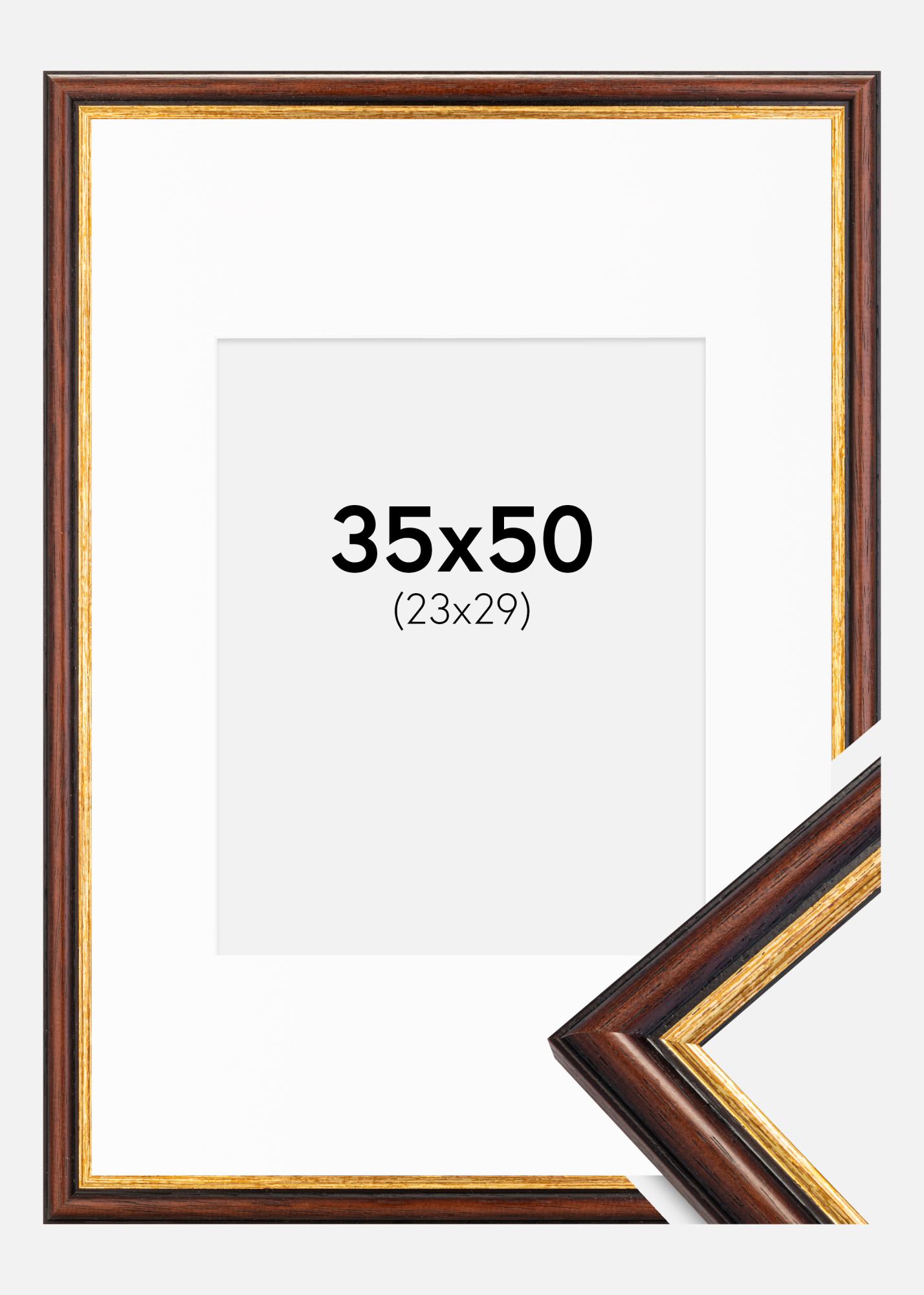 Moldura Siljan Castanho 35x50 cm - Passe-partout Branco 24x30 cm