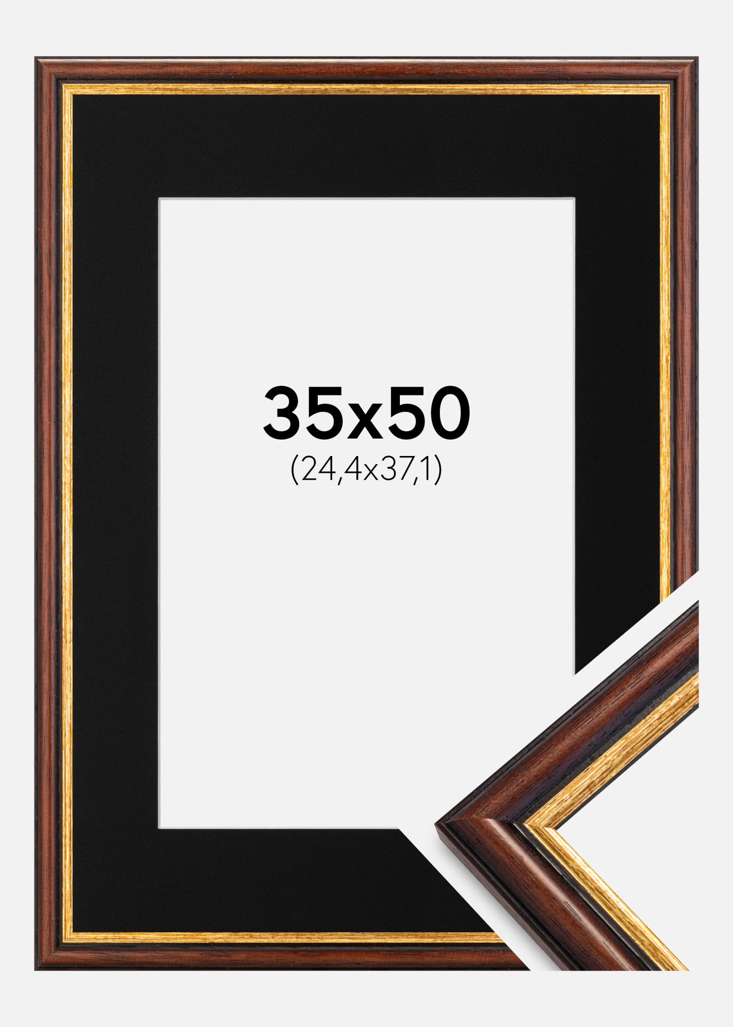 Moldura Siljan Castanho 35x50 cm - Passe-partout Preto 10x15 inches