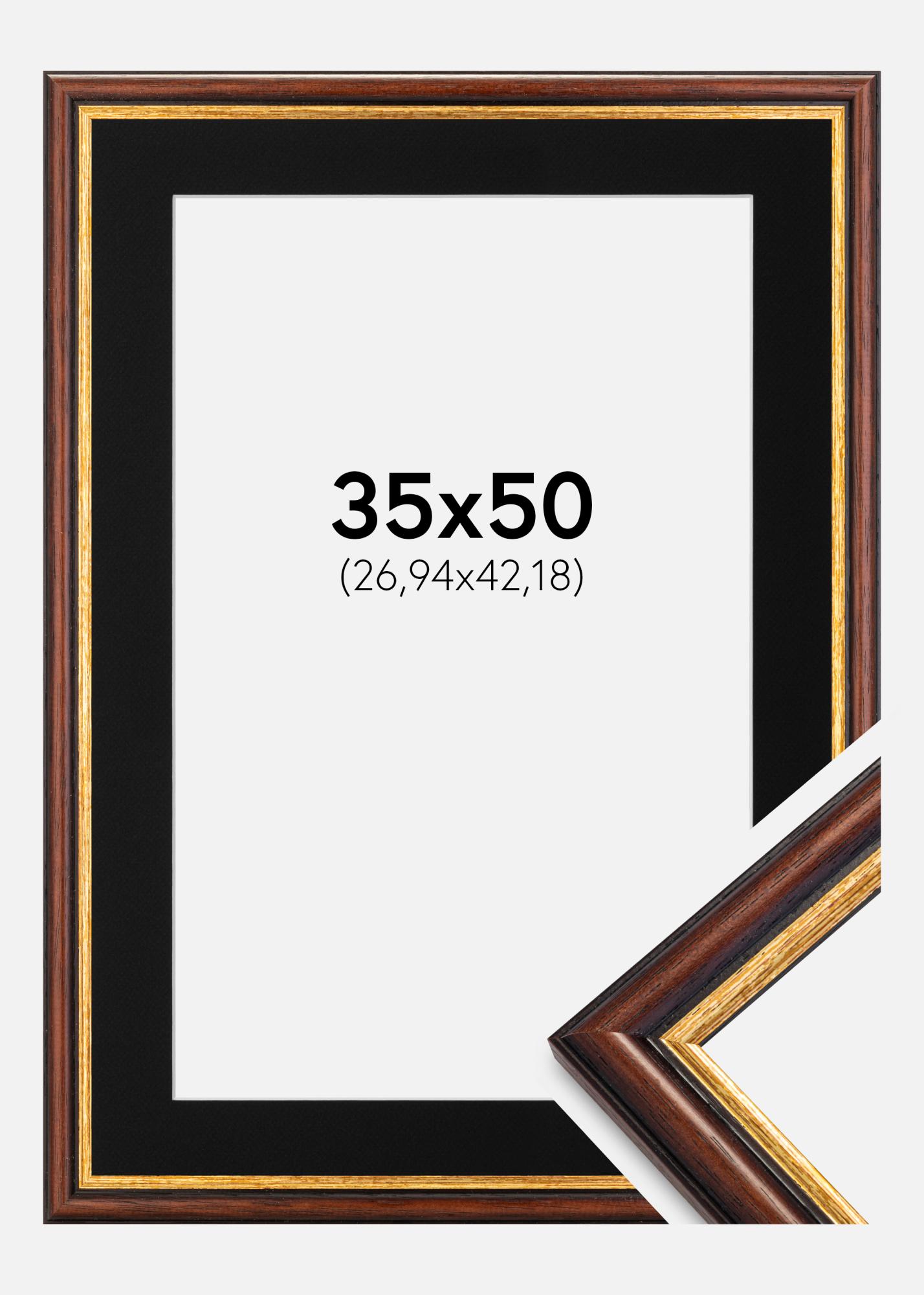 Moldura Siljan Castanho 35x50 cm - Passe-partout Preto 11x17 inches