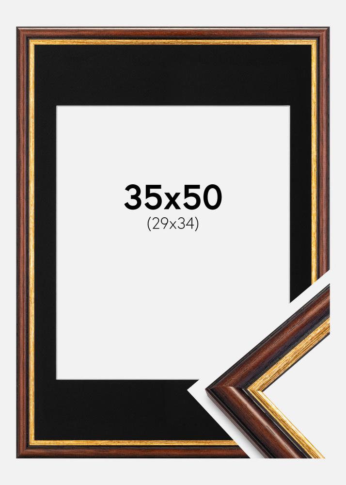 Moldura Siljan Castanho 35x50 cm - Passe-partout Preto 30x35 cm