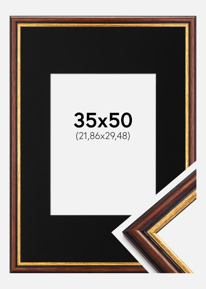 Moldura Siljan Castanho 35x50 cm - Passe-partout Preto 9x12 inches
