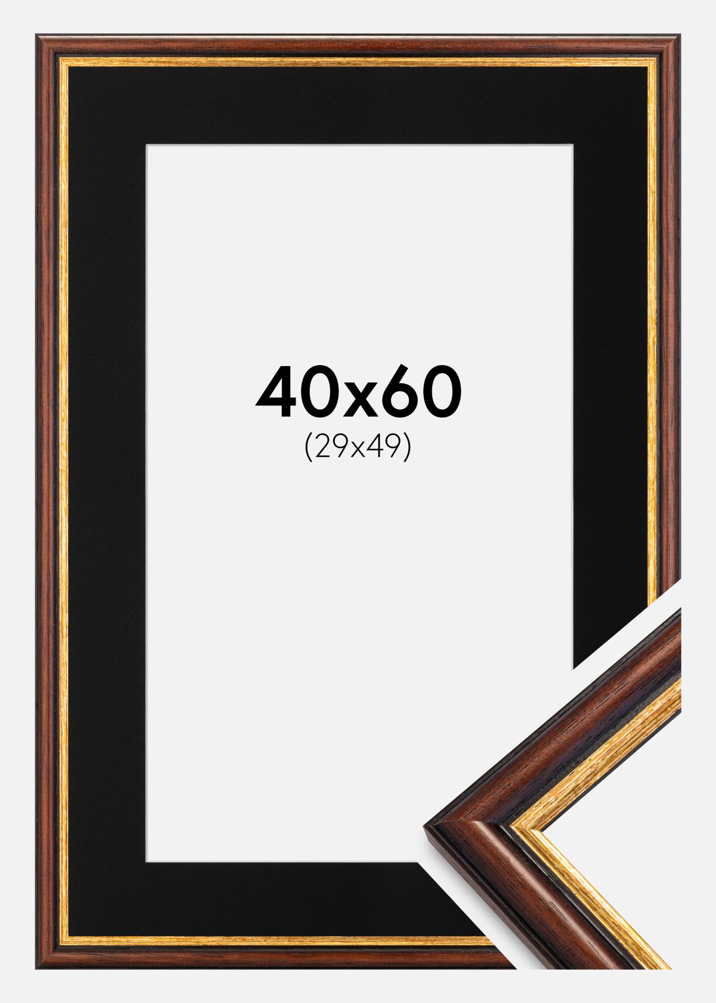 Moldura Siljan Castanho 40x60 cm - Passe-partout Preto 30x50 cm