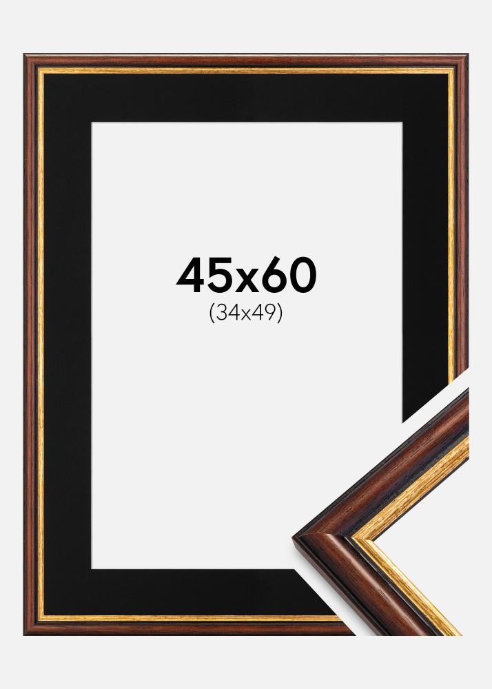 Moldura Siljan Castanho 45x60 cm - Passe-partout Preto 35x50 cm