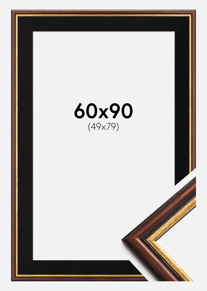 Moldura Siljan Castanho 60x90 cm - Passe-partout Preto 50x80 cm