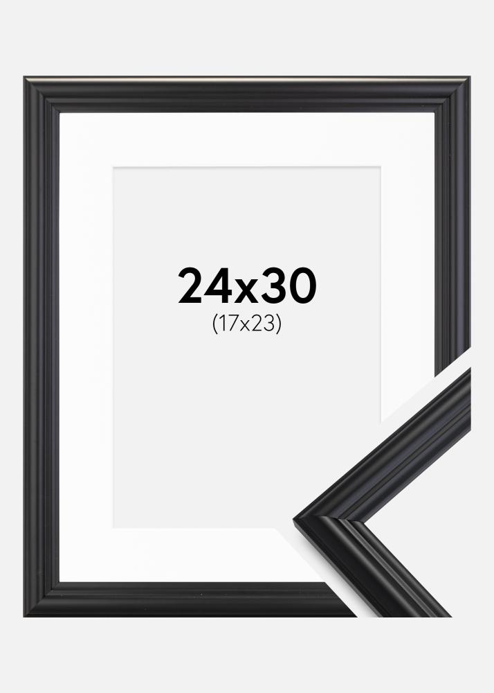 Moldura Siljan Preto 24x30 cm - Passe-partout Branco 18x24 cm