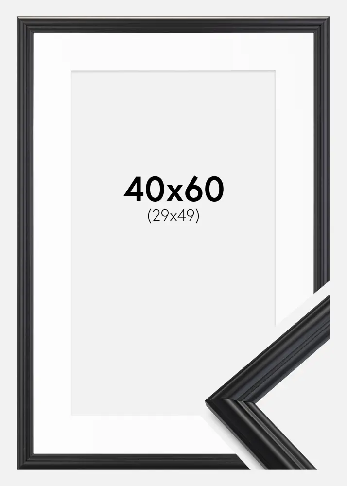 Moldura Siljan Preto 40x60 cm - Passe-partout Branco 30x50 cm