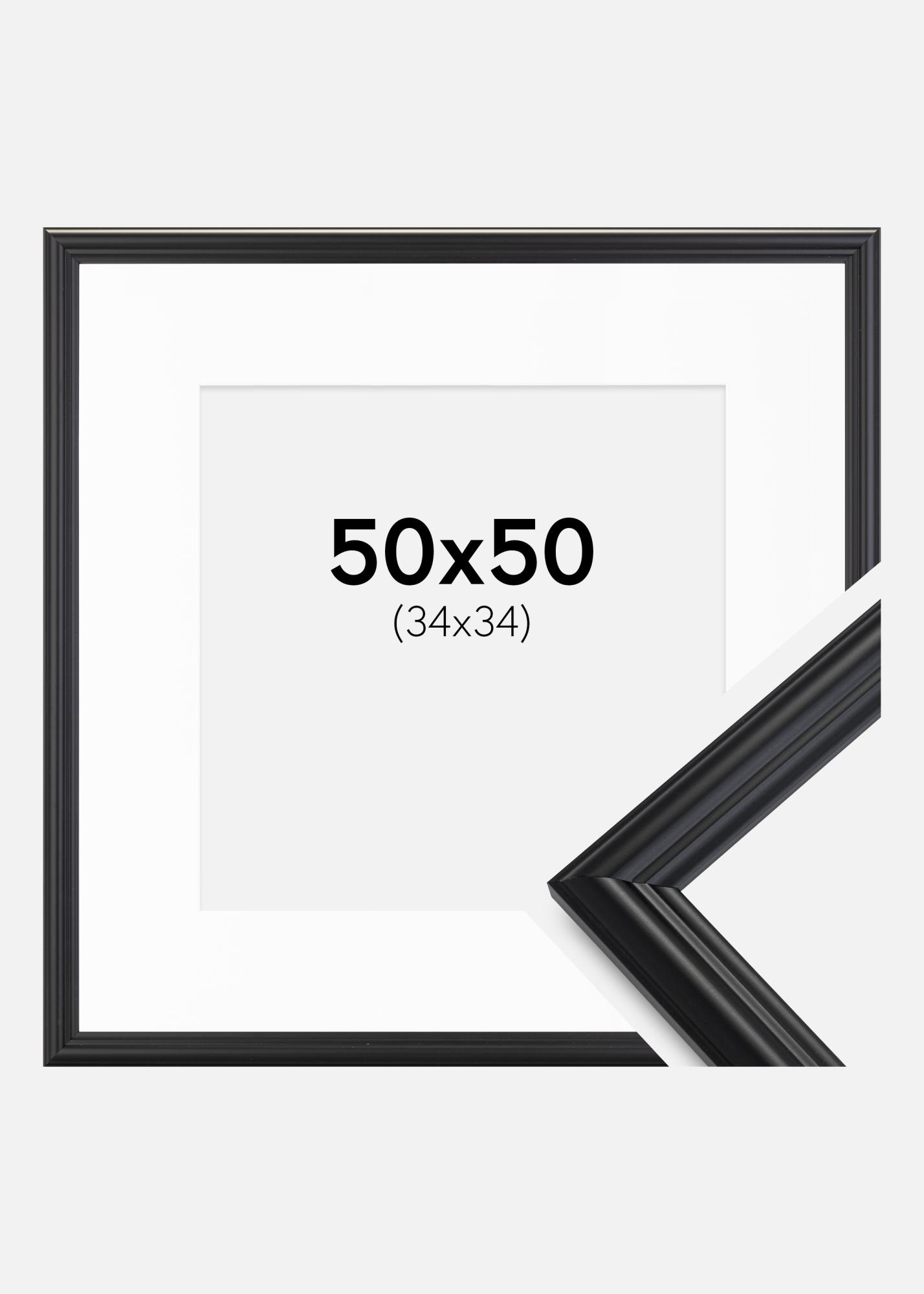 Moldura Siljan Preto 50x50 cm - Passe-partout Branco 35x35 cm