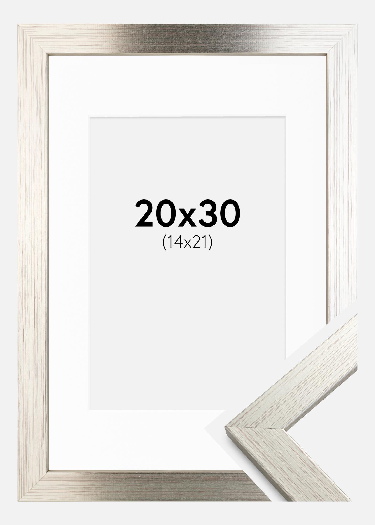 Moldura Silver Wood 20x30 cm - Passe-partout Branco 15x22 cm