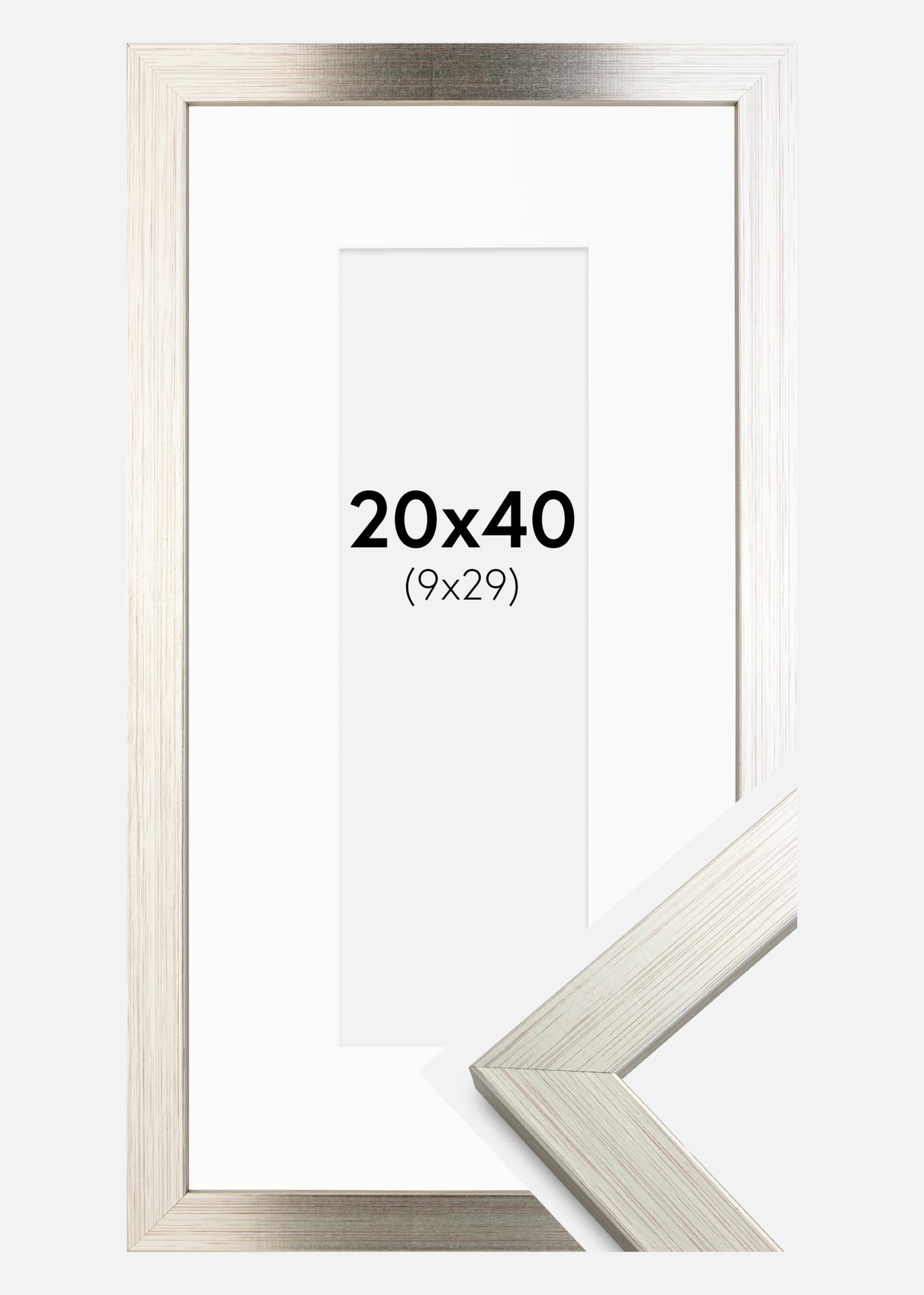 Moldura Silver Wood 20x40 cm - Passe-partout Branco 10x30 cm