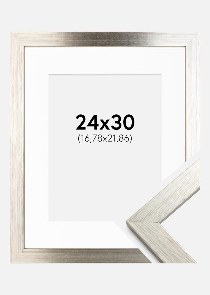 Moldura Silver Wood 24x30 cm - Passe-partout Branco 7x9 inches