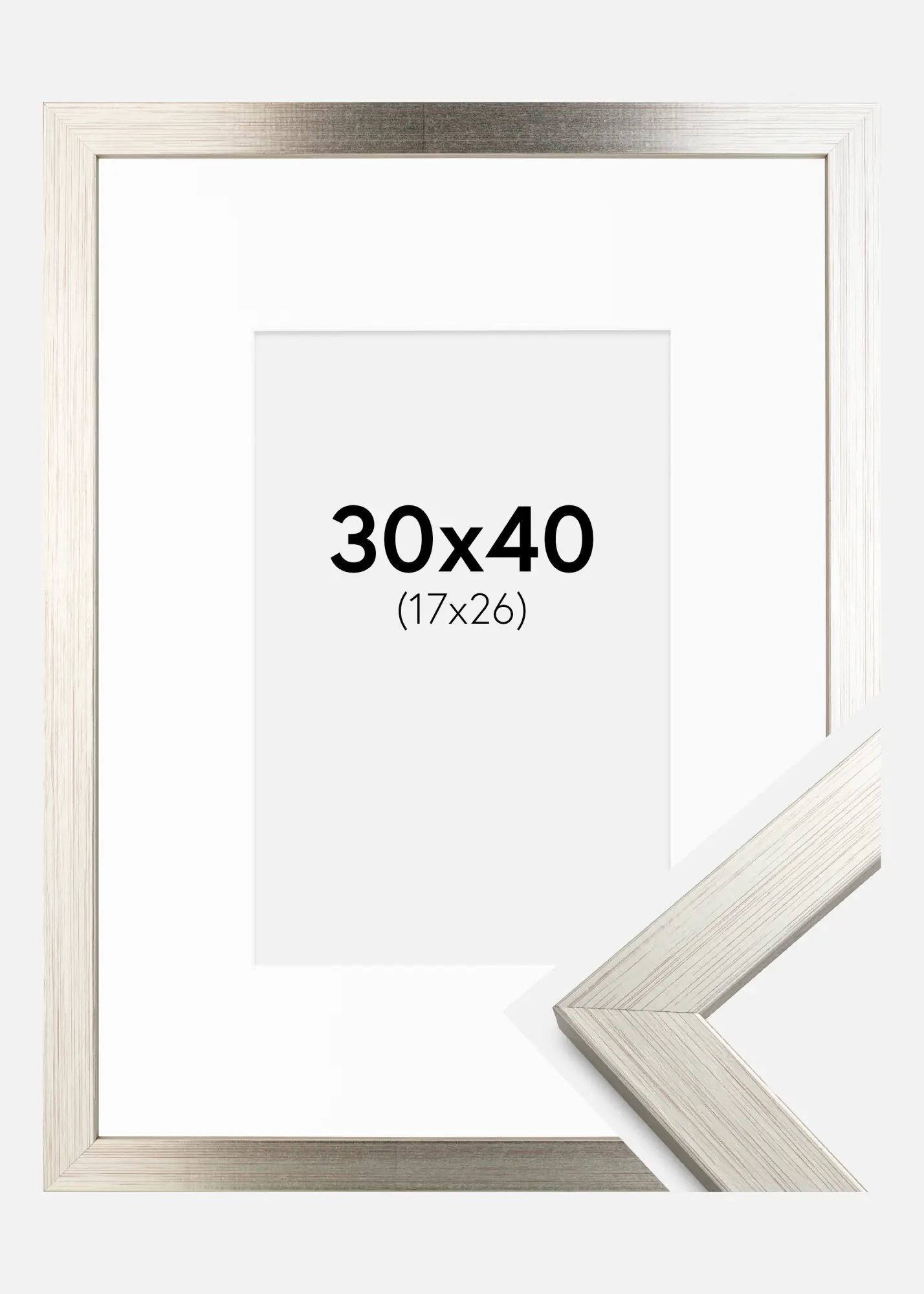 Moldura Silver Wood 30x40 cm - Passe-partout Branco 18x27 cm