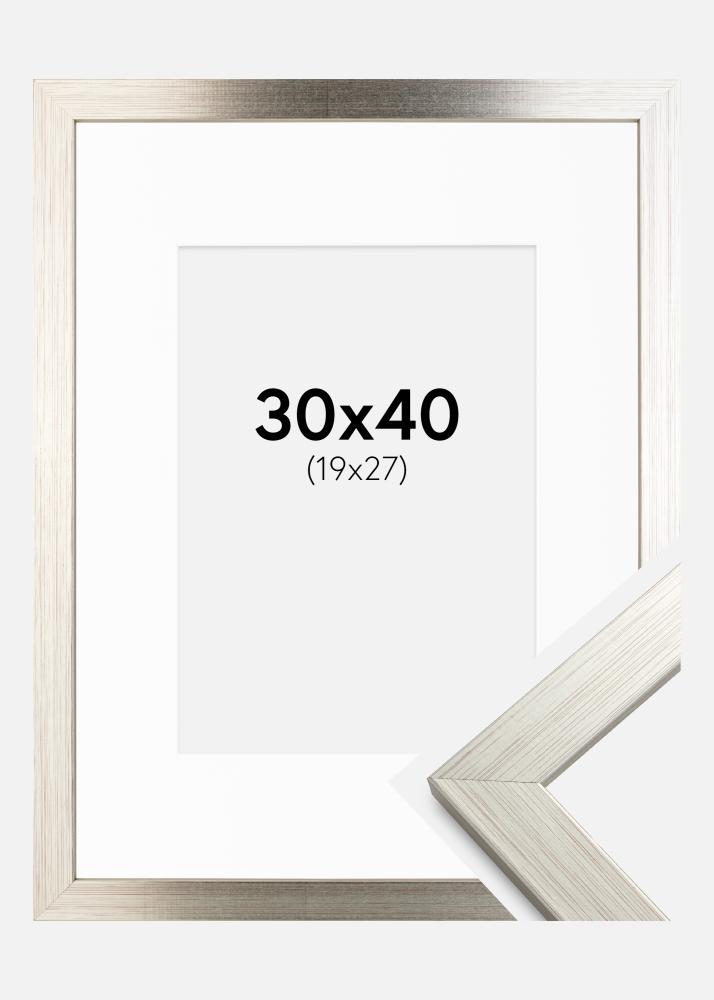 Moldura Silver Wood 30x40 cm - Passe-partout Branco 20x28 cm