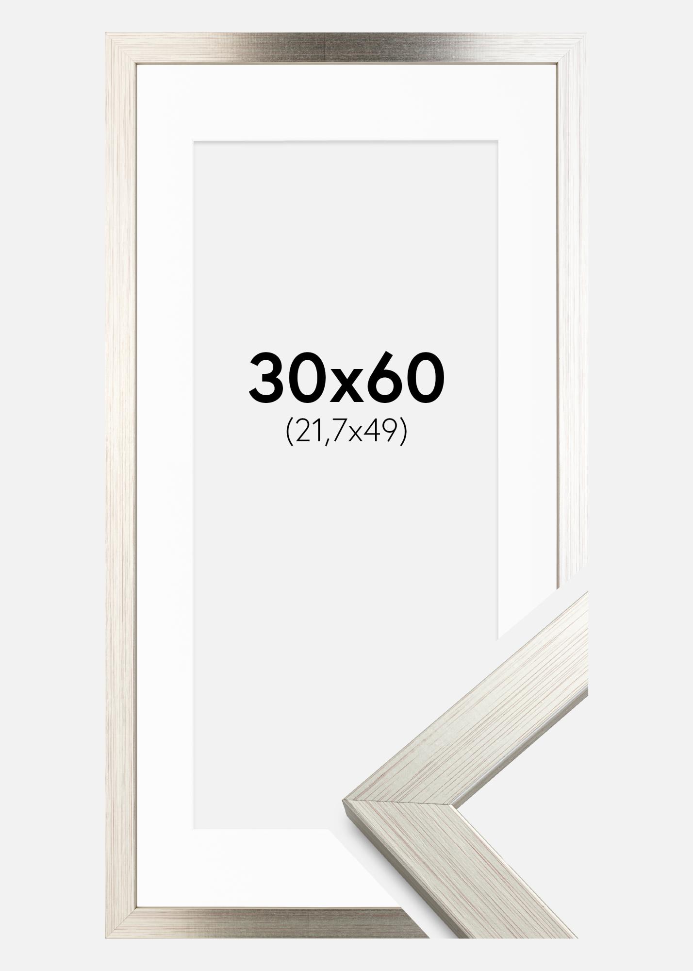 Moldura Silver Wood 30x60 cm - Passe-partout Branco 22,7x50 cm