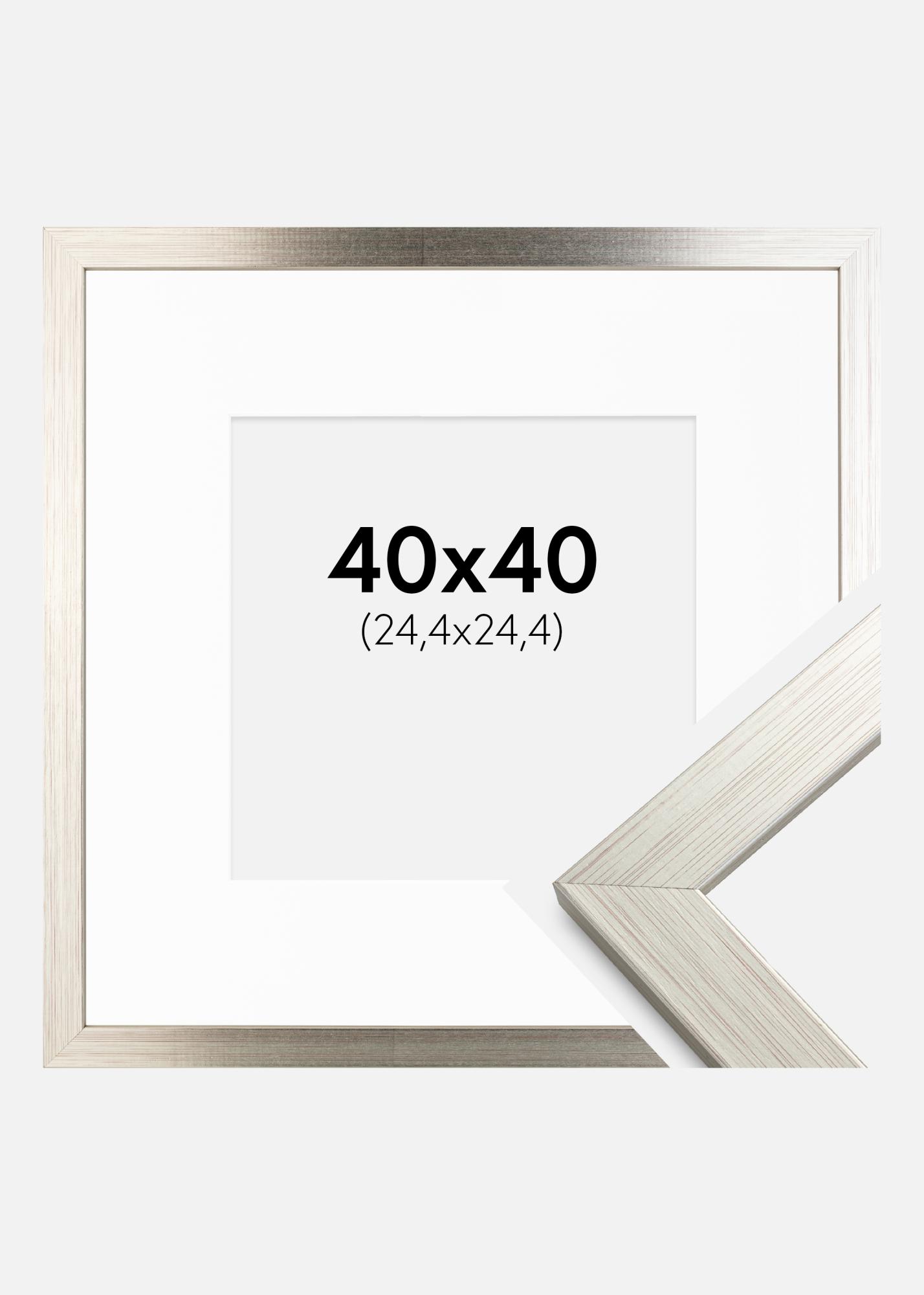 Moldura Silver Wood 40x40 cm - Passe-partout Branco 10x10 inches