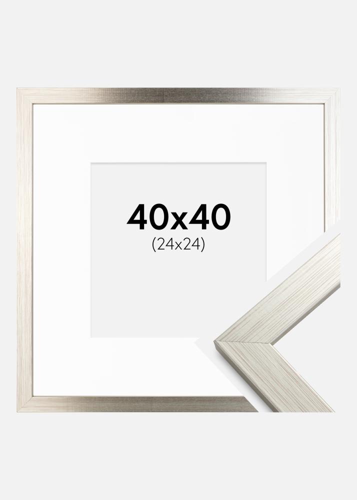 Moldura Silver Wood 40x40 cm - Passe-partout Branco 25x25 cm