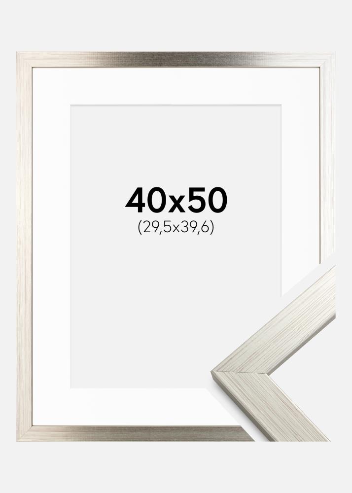 Moldura Silver Wood 40x50 cm - Passe-partout Branco 12x16 inches