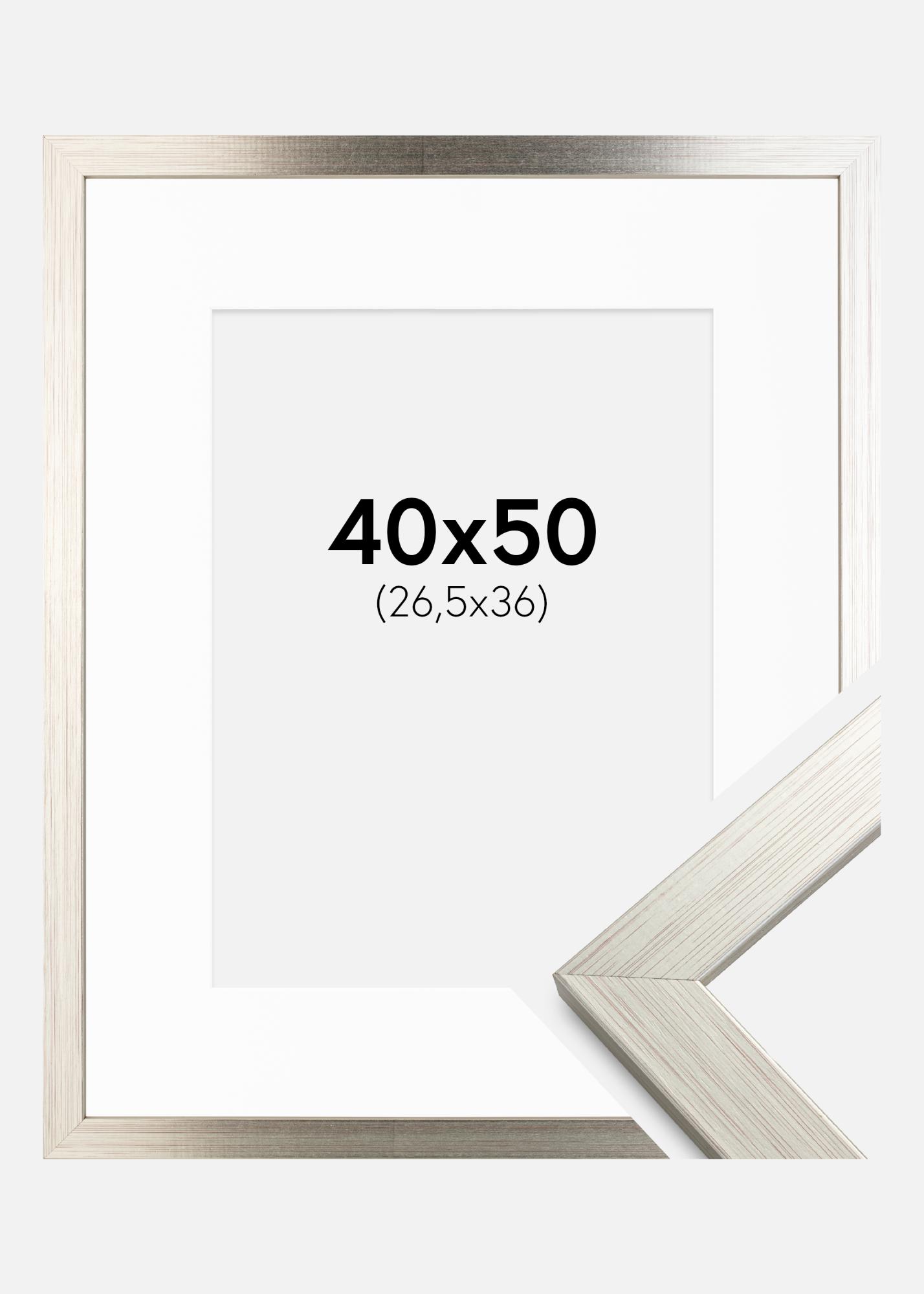 Moldura Silver Wood 40x50 cm - Passe-partout Branco 27,5x37 cm
