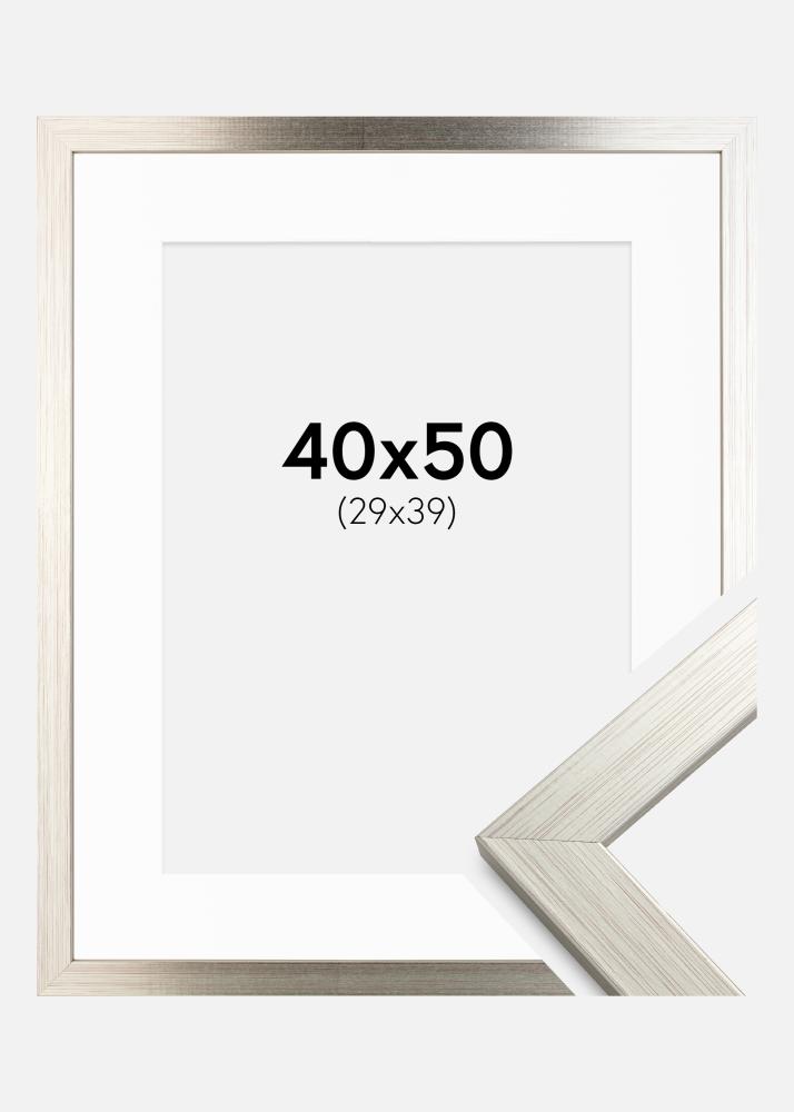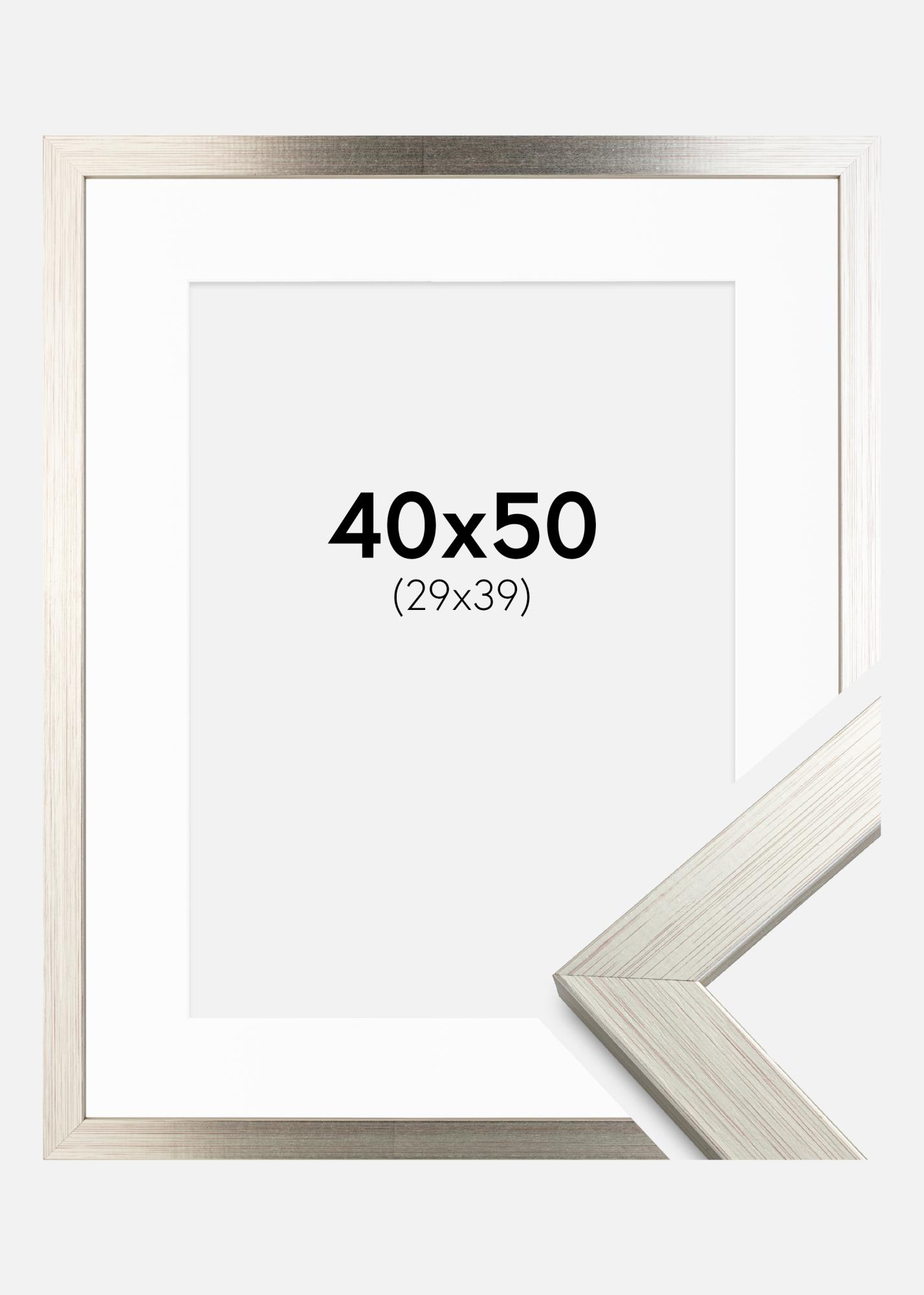 Moldura Silver Wood 40x50 cm - Passe-partout Branco 30x40 cm